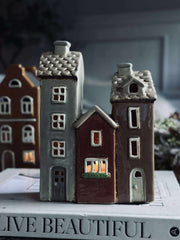 Skapa en varm och inbjudande atmosfär i ditt hem med en uppsättning av tre stilrena ljuslyktor. Dessa keramiska lyktor erbjuder en enkel lösning för dem som söker subtil belysning och dekorativ charm för både vardagsrum och festliga tillfällen.