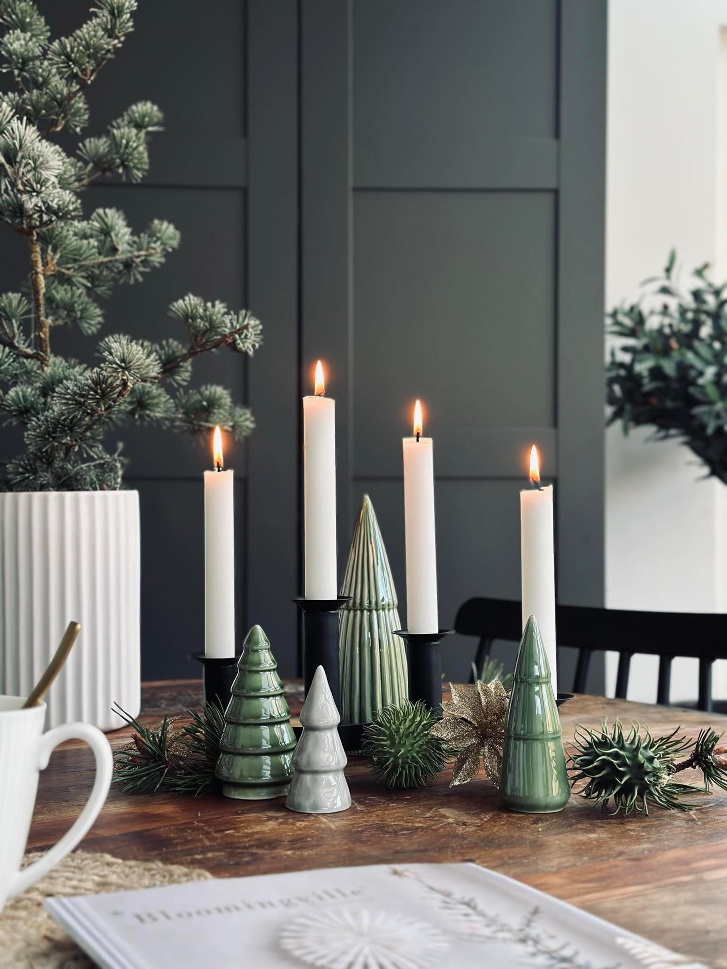 Den svarta färgen ger ett grafiskt, lugnt uttryck som fungerar bra tillsammans med både ljusa och mörka nyanser i inredningen och kan stå vackert ensam eller som del av en mer pyntad uppsättning.