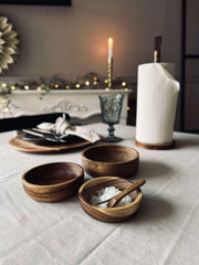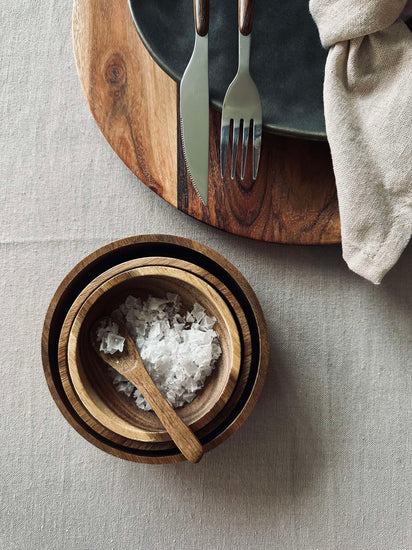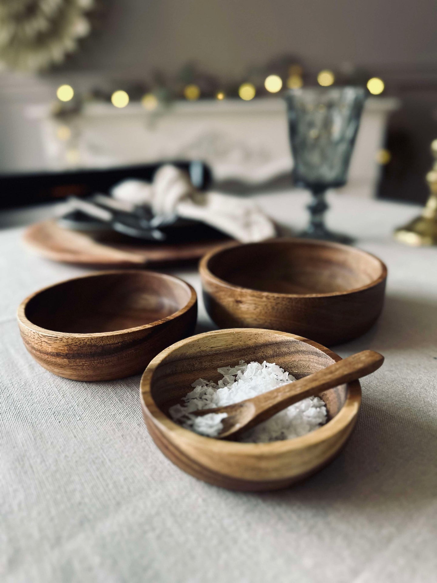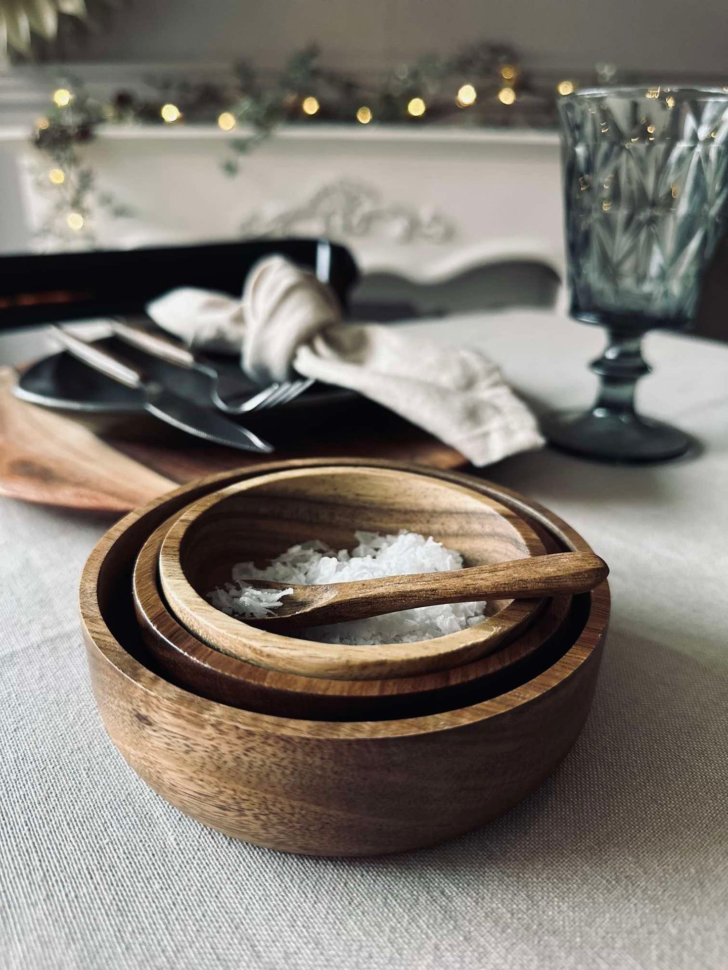 Akaciaskålarna är skapade av hållbart akaciaträ, vilket ger dem en naturlig skönhet och hållbarhet. Träets täta struktur gör skålarna motståndskraftiga mot fukt och skador, vilket förlänger deras livslängd. Dessutom bidrar akaciaträets varma toner till en inbjudande atmosfär vid varje dukning, vilket gör dem till ett uppskattat inslag både i vardagen och vid fest.