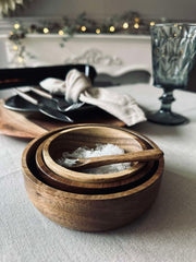 Har du tröttnat på att dina skålar inte matchar och saknar funktionalitet? Upptäck Akacia Skålar - Set om 3 st. De är praktiska för servering och tillverkade i hållbart material. De erbjuder en enkel lösning för att organisera din matupplevelse stilfullt.