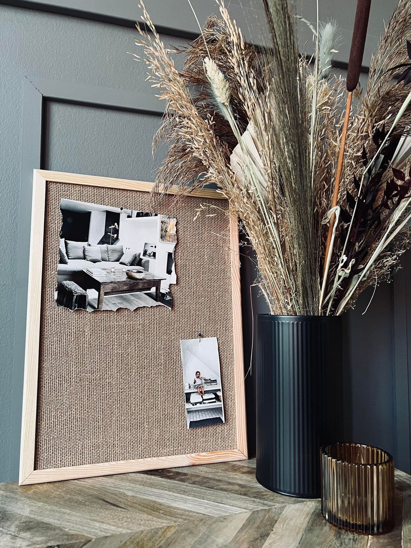Drömmen om ett hem där du kan vara dig själv börjar här. Med denna opslagstavla i hessian kan du skapa en atmosfär som speglar din personlighet och smak. Tänk dig hur ditt hem skulle se ut med denna unika inredningsdetalj.