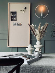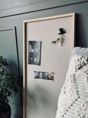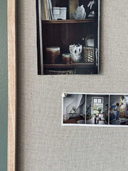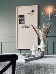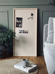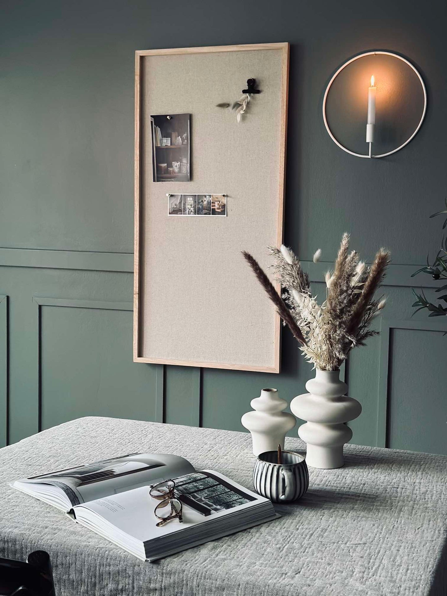 Tillverkad av kork och klädd med naturfärgat linne erbjuder denna korktavla en behaglig och funktionell yta för dina anteckningar och påminnelser. Kombinationen av korkens hållbarhet och linets naturliga estetik skapar en lugnande atmosfär som kan bidra till en mer fokuserad och organiserad arbetsplats. Dessutom ger den naturliga färgpaletten en subtil och stilren touch till inredningen.