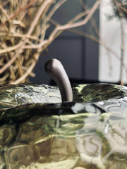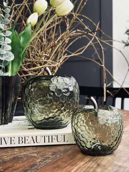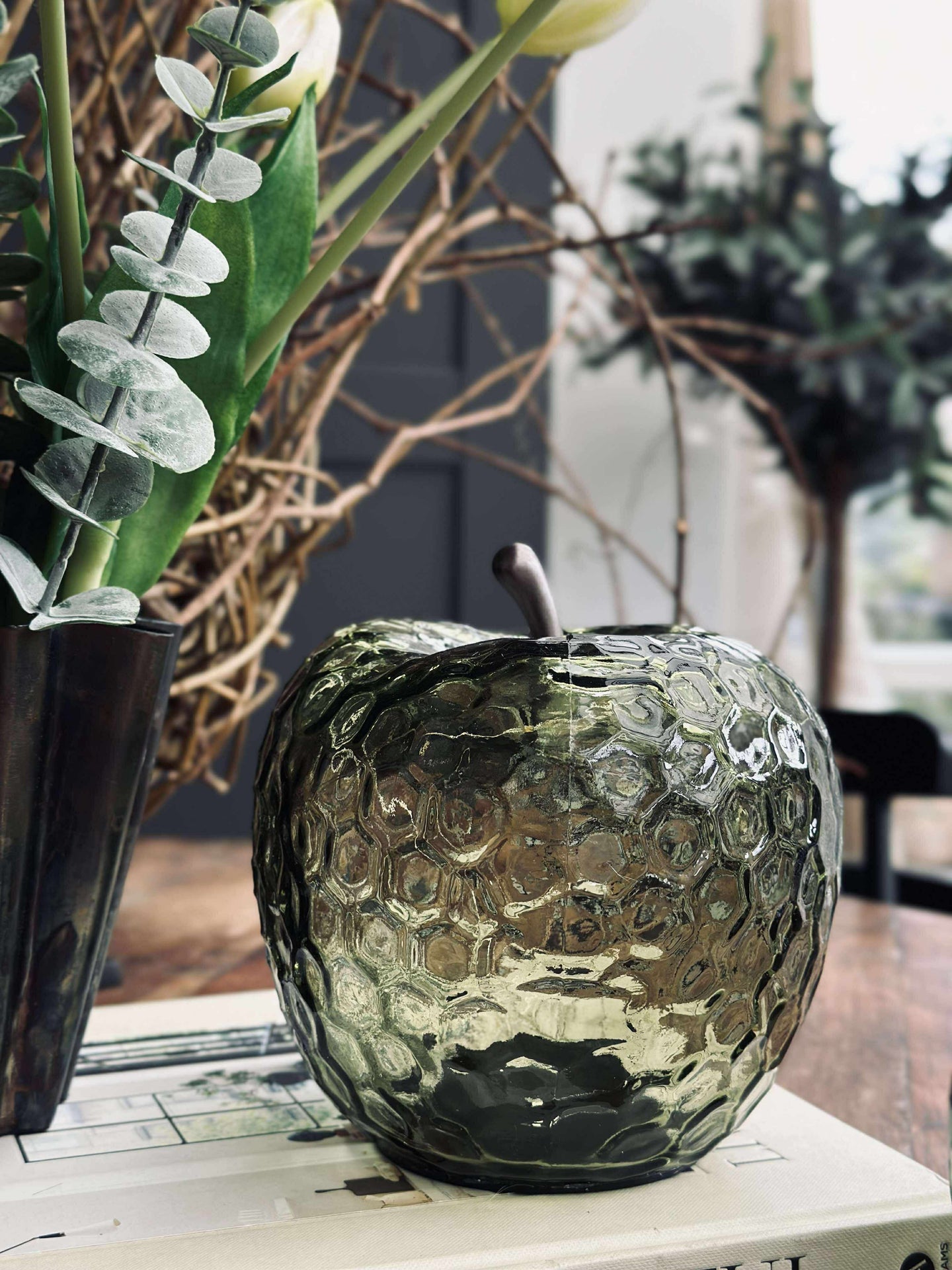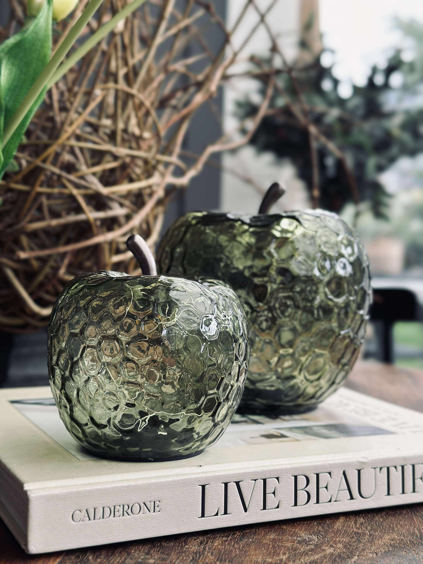 Äppellampan är tillverkad av glas, vilket ger den en tidlös estetik och en förmåga att sprida ljuset jämnt i rummet. Glasets transparens gör det möjligt för ljuset att reflekteras och brytas, vilket skapar en mjuk och behaglig atmosfär. Materialets hållbarhet innebär också att lampan kan behålla sitt utseende över tid, vilket gör den till ett långvarigt inslag i ditt hem.