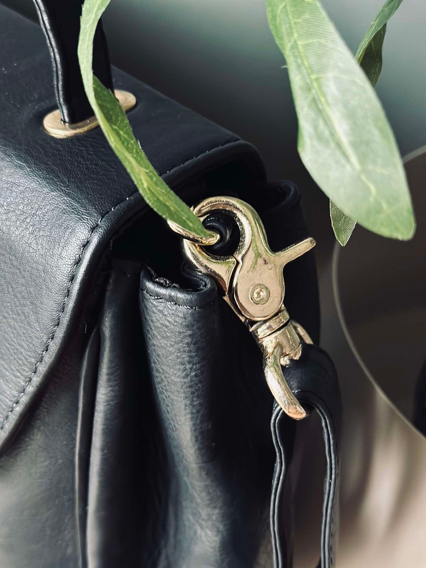 - Väskan har en fast rem för handbärning och en justerbar, avtagbar rem för axel- eller crossbodybärning