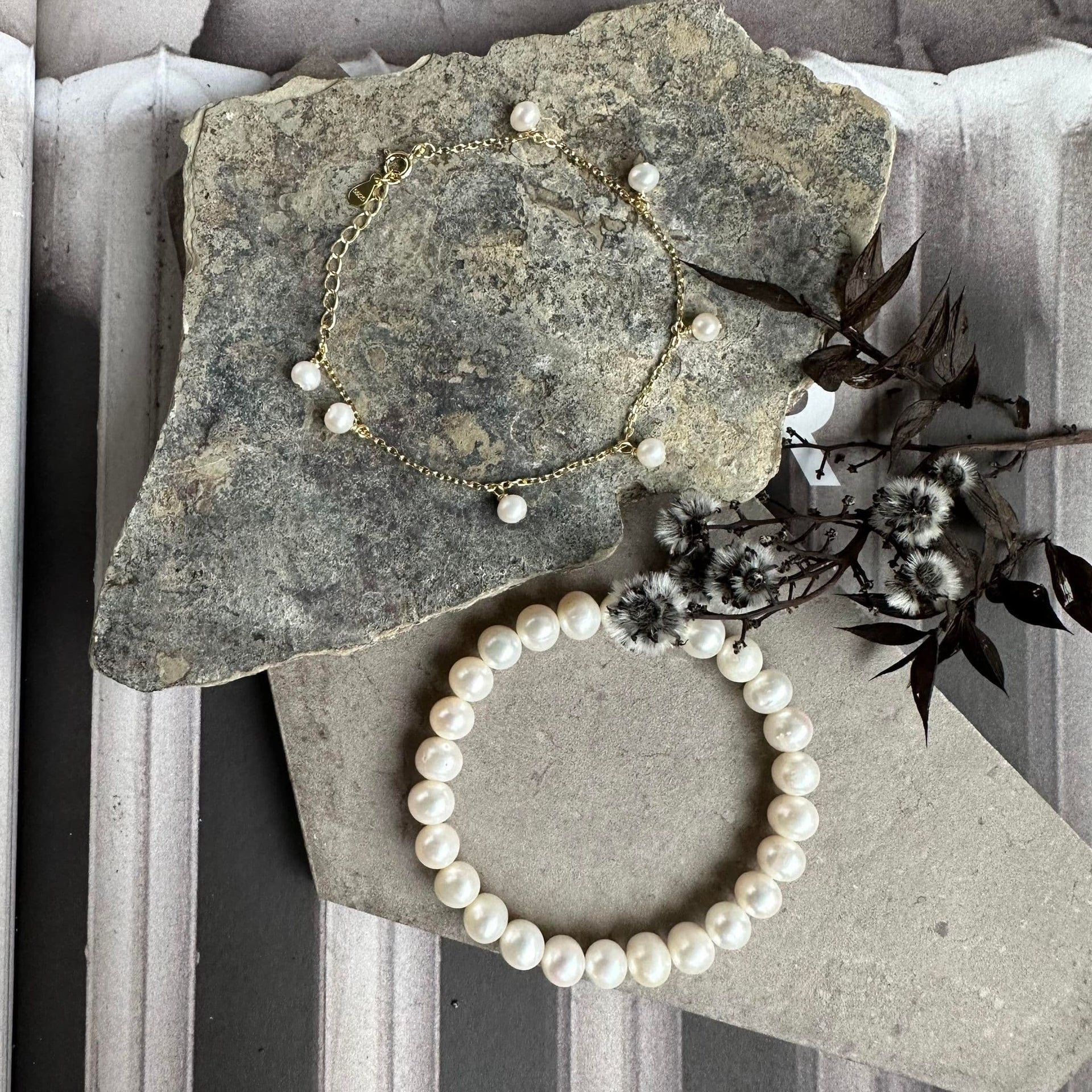 - Set med 2 äkta sötvattenspärlarmband