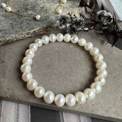 Detta perlearmband kommer med ett lås i förgyllt sterlingsilver, vilket ger en extra touch av lyx och hållbarhet. Förgyllningen ger en varm, gyllene glans som kompletterar pärlornas lyster, medan sterlingsilvret garanterar långvarig kvalitet och styrka. Detta lås är inte bara estetiskt tilltalande, utan också praktiskt och säkert, vilket gör att armbandet sitter säkert på handleden.