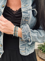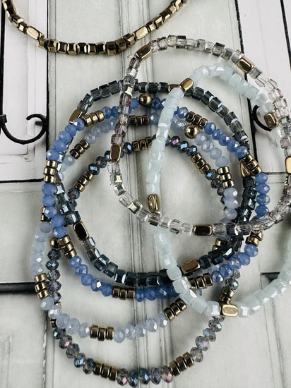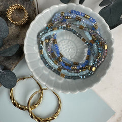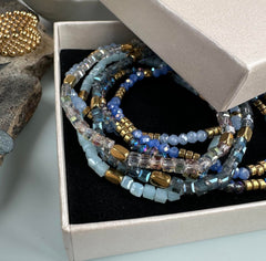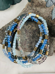 Armband Merle - Blå mix. Erbjuder fina elastiska armband som passar alla, från storlek XS till L. Dessa armband kan bäras ensamma för en minimalistisk look, eller mixas med andra smycken för att skapa en unik stil. Tack vare deras elastiska design är de inte bara vackra att se på, utan också bekväma och anpassningsbara till din outfit och personliga smak.