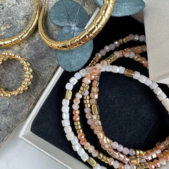 - Elastiska armband, passar alla från XS till L, kan bäras ensamma eller blandas med andra smycken