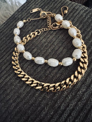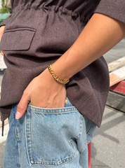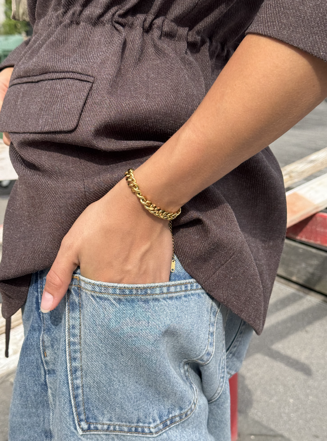 - Feminint men kraftigt armband i rostfritt stål, förgyllt med 18K guld