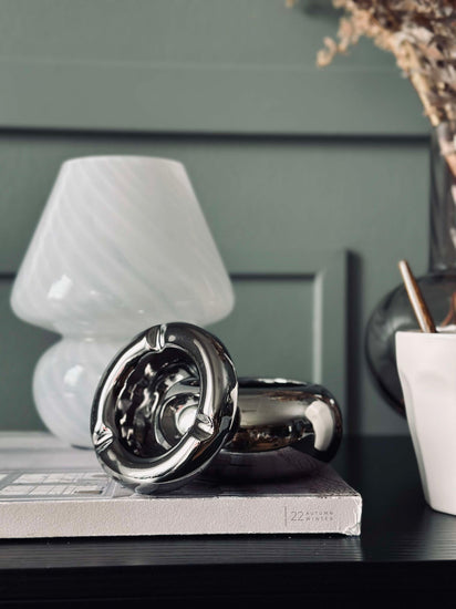 Detta askfat med sitt silverutseende erbjuder en stilren och tidlös känsla som enkelt smälter in i vilken utomhusmiljö som helst. Silverytan reflekterar ljuset på ett behagligt sätt, vilket kan bidra till en ljusare och mer inbjudande atmosfär i trädgården eller på uteplatsen. Dessutom är det lätt att hålla rent och underhålla, vilket ger en praktisk användarupplevelse.