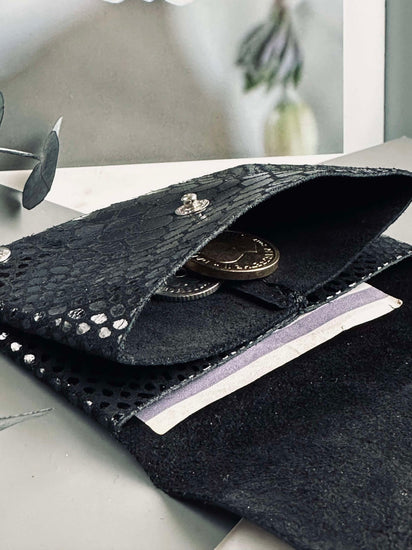 Ge din plånbok en uppdatering idag och njut av en mer organiserad och stilren vardag. Med Aura liten plånbok - Svart krokodil kommer du aldrig mer att behöva leta efter dina kort eller kontanter. Uppgradera din plånbok och upplev skillnaden!