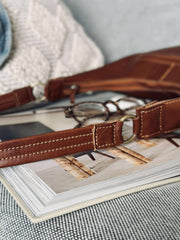 - Tillverkad av urban läder, naturligt målat oxläder med bevarat åremönster och lätt vax för ett mjukt, slätt vintageutseende