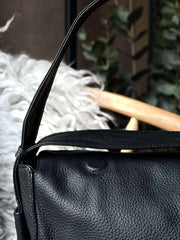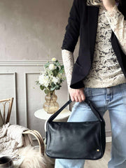 Denna axelväska är skapad av 100 % kalvskinn, vilket ger en naturlig mjukhet och hållbarhet. Kalvskinnets fina struktur bidrar till en tidlös estetik som åldras vackert över tid. Materialets robusta karaktär gör väskan till en pålitlig följeslagare i vardagen, samtidigt som det erbjuder en känsla av kvalitet och stil i varje detalj.
