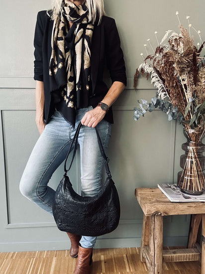 Vår axelväska i läder utstrålar elegans och hållbarhet tack vare dess exklusiva läderkvalitet. Användningen av högkvalitativt läder garanterar en lång livslängd och en tidlös design. Dessutom erbjuder denna läderkvalitet en mjuk och bekväm yta, vilket gör väskan behaglig att bära under långa perioder.