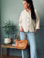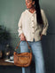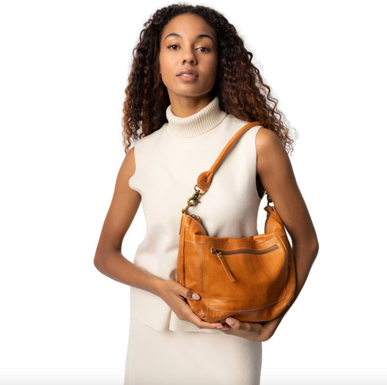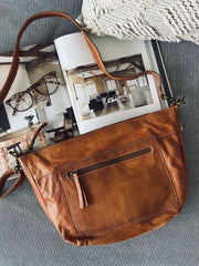Axelväskan är tillverkad av urbanläder, ett naturligt färgat oxläder som bevarar det naturliga ådringsmönstret. Detta material ger väskan en distinkt och tidlös känsla. Det lätta vaxskiktet förstärker det vintageinspirerade utseendet och ger ett subtilt skydd mot dagligt slitage, vilket gör att väskan åldras med en karaktär och charm som bara förbättras med tiden.