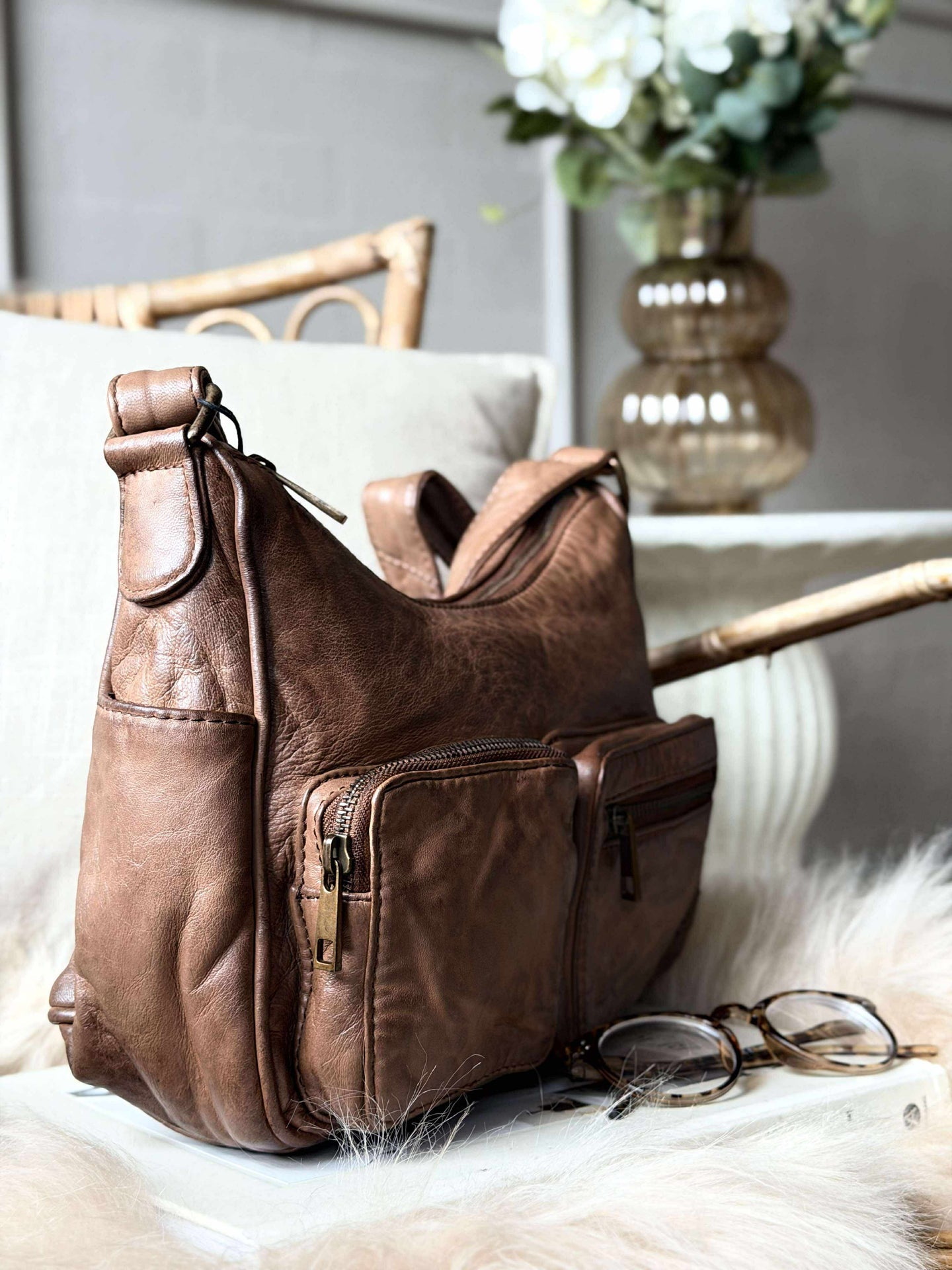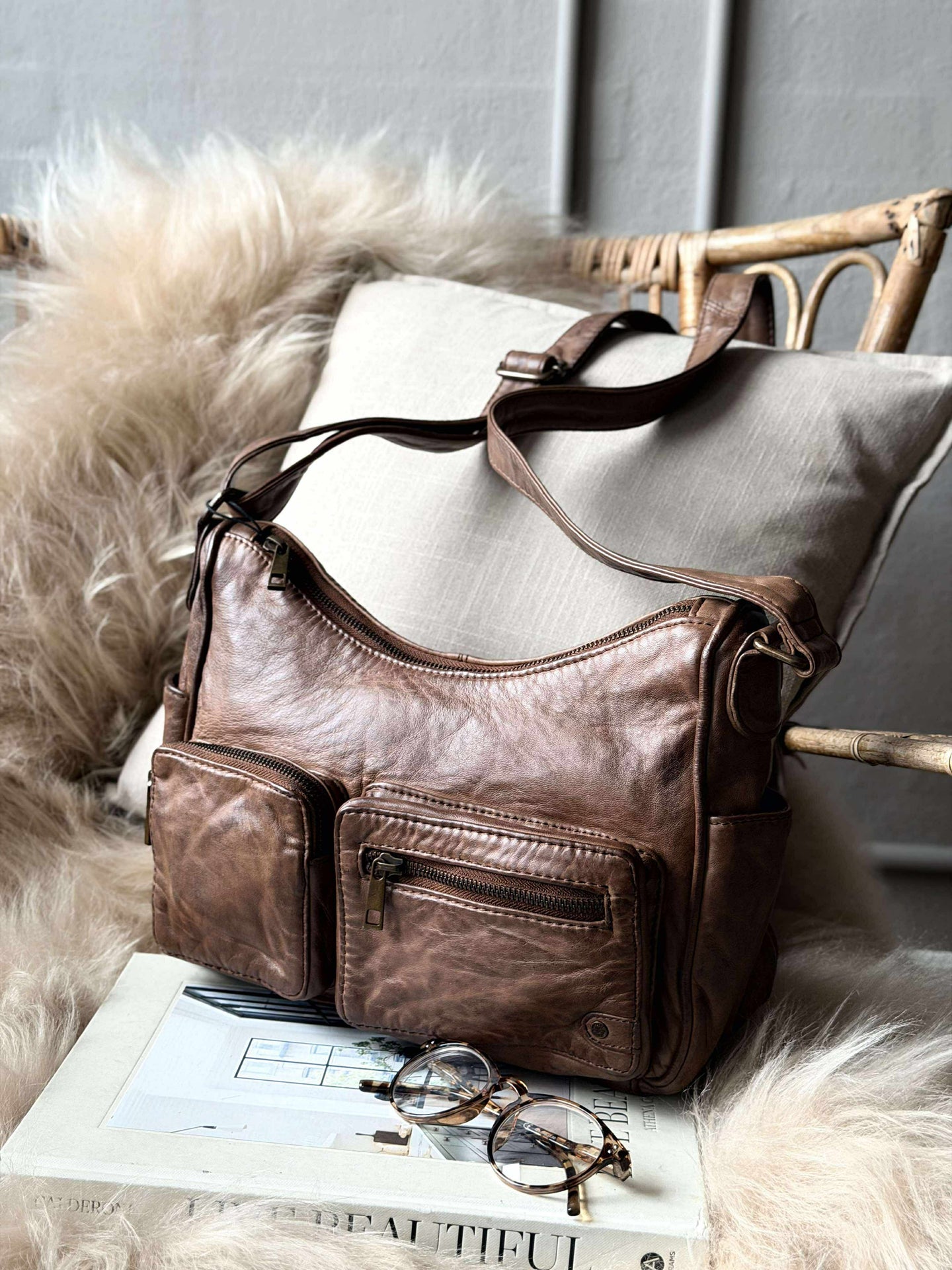 Axelremsväskan är tillverkad av 100 % äkta lammskinn, vilket ger en mjuk och lyxig känsla vid beröring. Materialet är hållbart och anpassar sig över tid, vilket gör att väskan blir ännu mer personlig med användning. Lammskinnets naturliga andningsförmåga bidrar till att hålla innehållet fräscht, vilket gör det till ett praktiskt val för daglig användning.