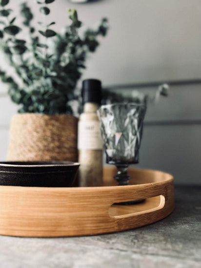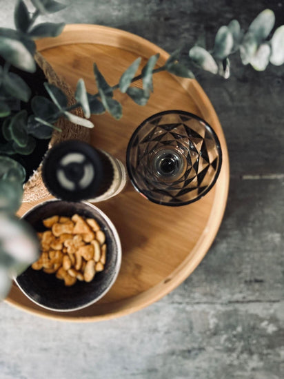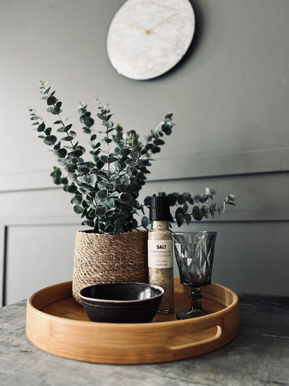 Vår bambubakke är rund, minimalistisk och funktionell. Dess naturliga träfärg och släta yta ger en modern och skandinavisk look som passar i alla hem. Bakken kan användas både för servering och dekoration.