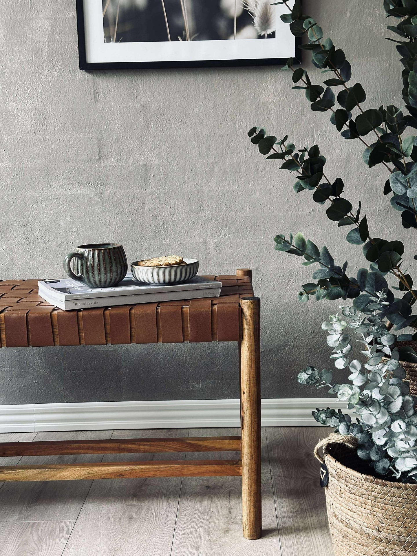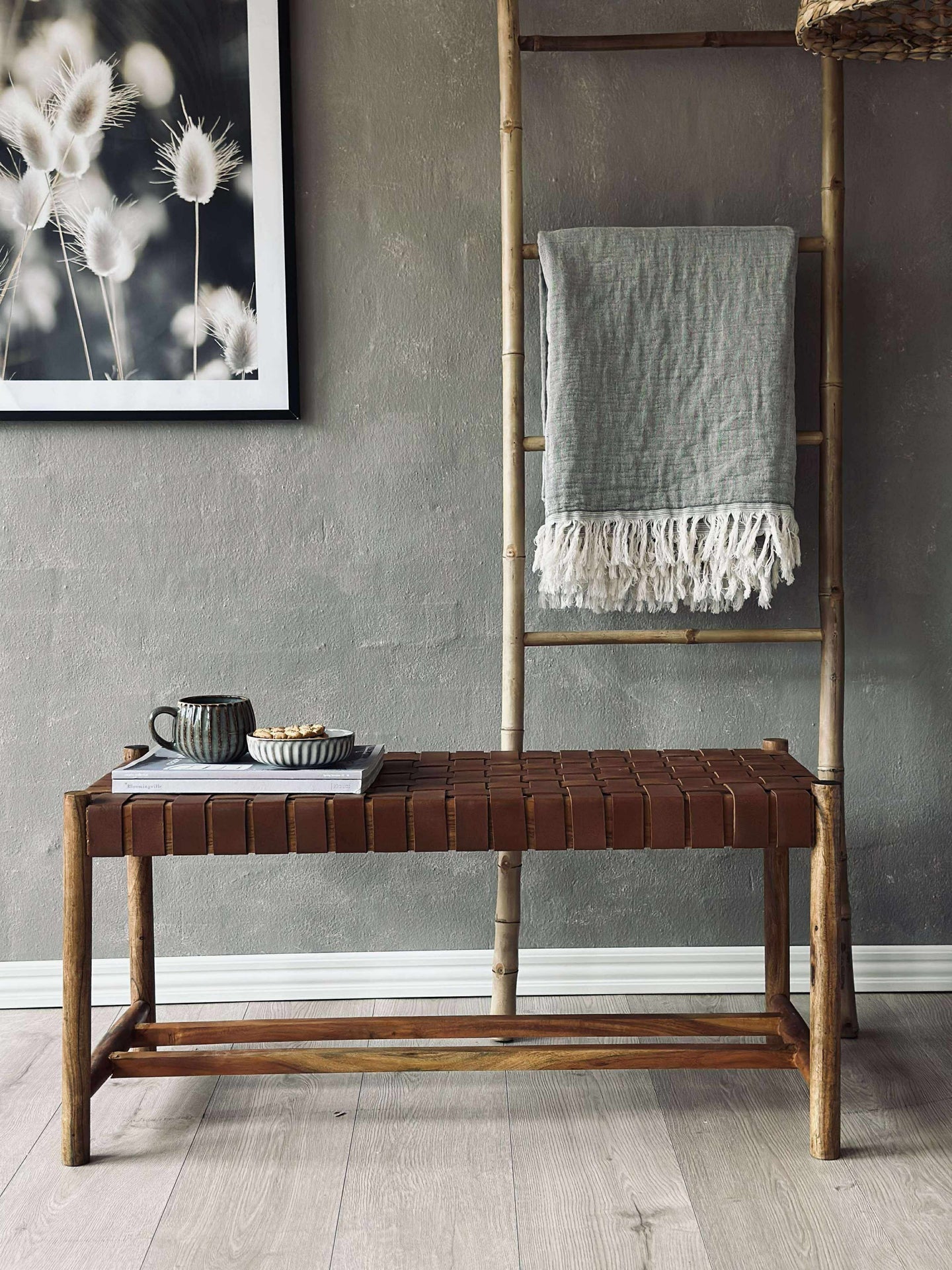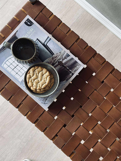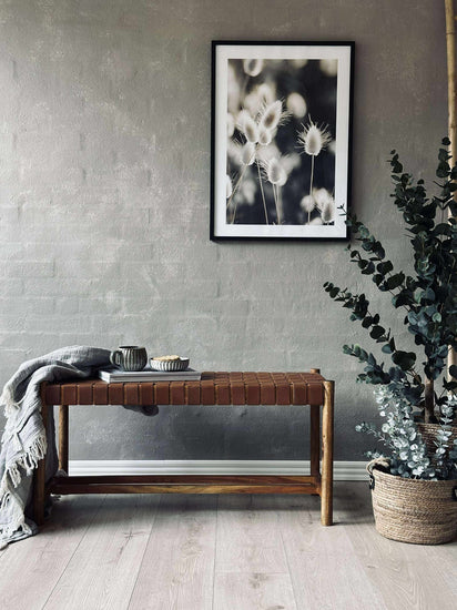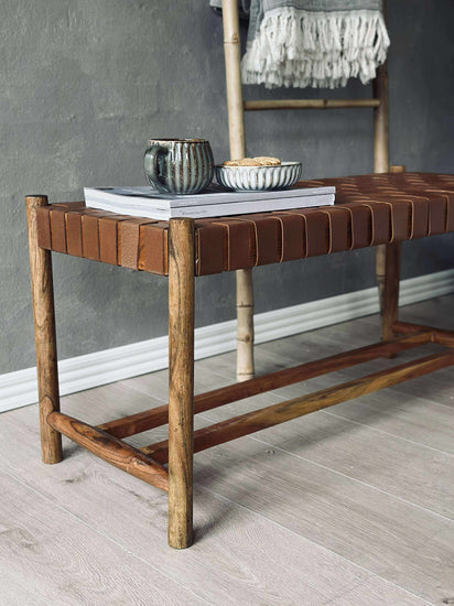 Bänk med flätad sits - Cognacläder