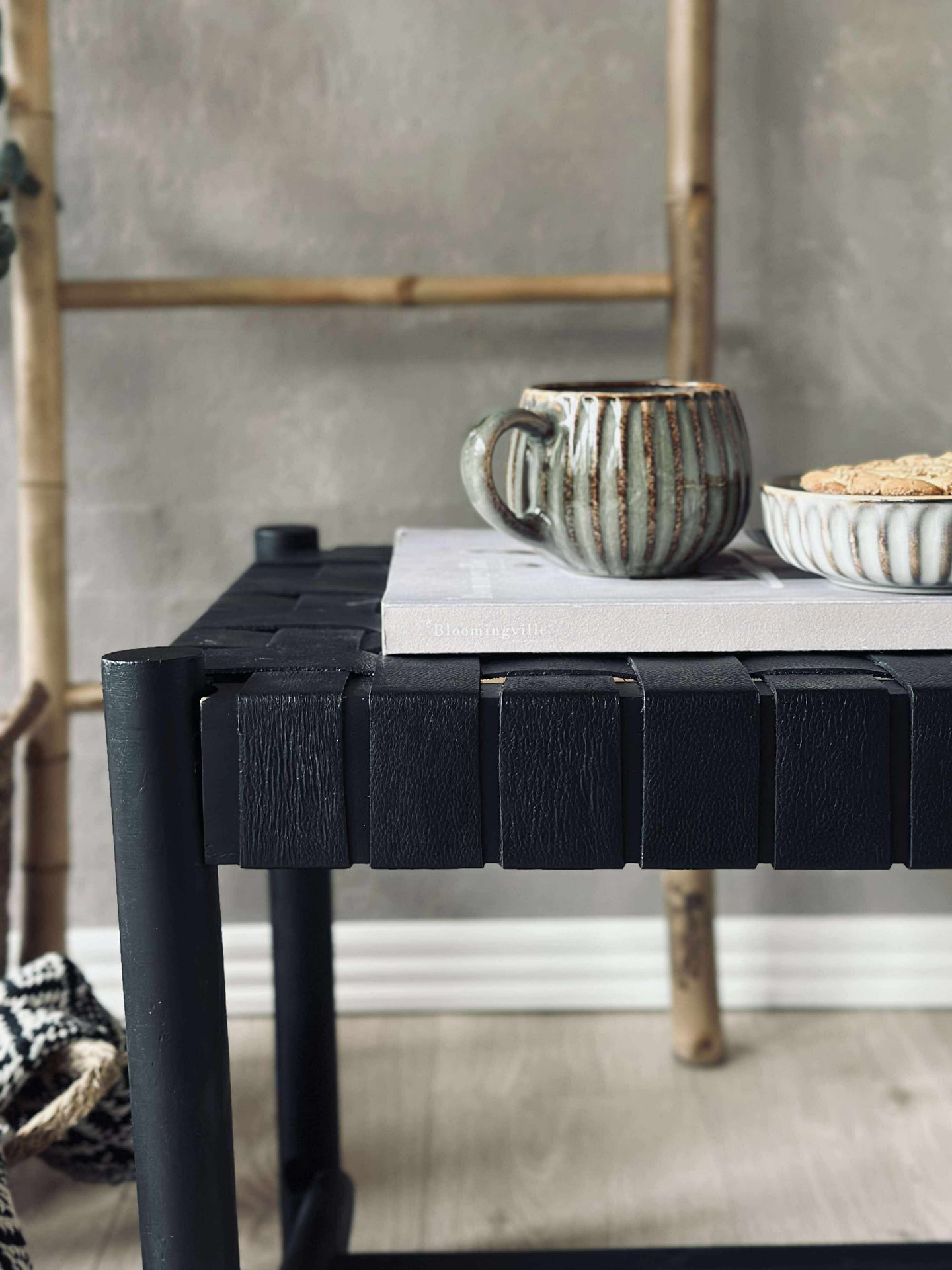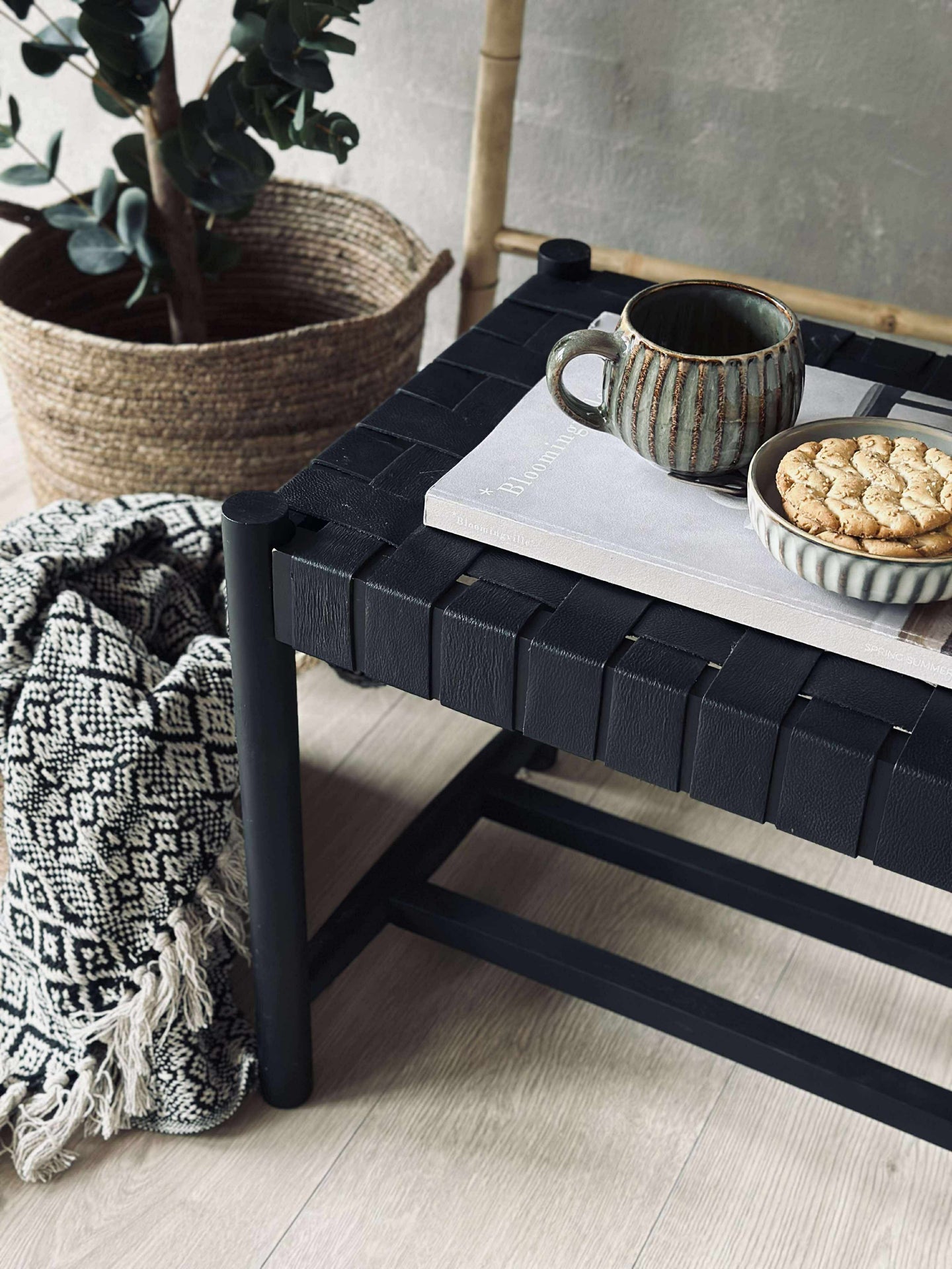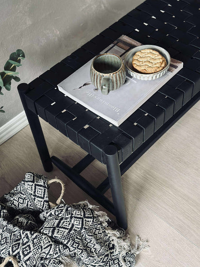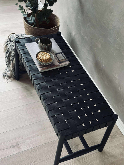 En svart bänk med flätad sits är ett bra val när du vill tillföra struktur och varma material utan att det känns tungt i rummet. Den flätade sitsen tillför en tydlig detalj som gör bänken karaktärsfull, men ändå lätt att kombinera med andra möbler.