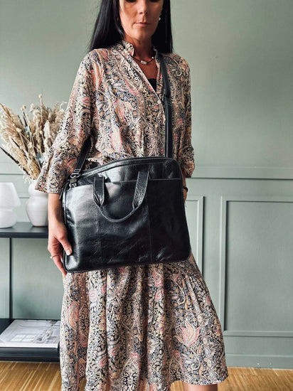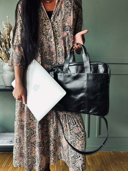 Denna laptopväska i läder är tillverkad av högkvalitativt kohudsläder, vilket ger den en robust och hållbar karaktär. Lädret bidrar inte bara till väskans eleganta utseende, utan ger också ett effektivt skydd för din laptop. Dessutom åldras lädret vackert över tiden, vilket innebär att väskans utseende bara förbättras ju mer den används.