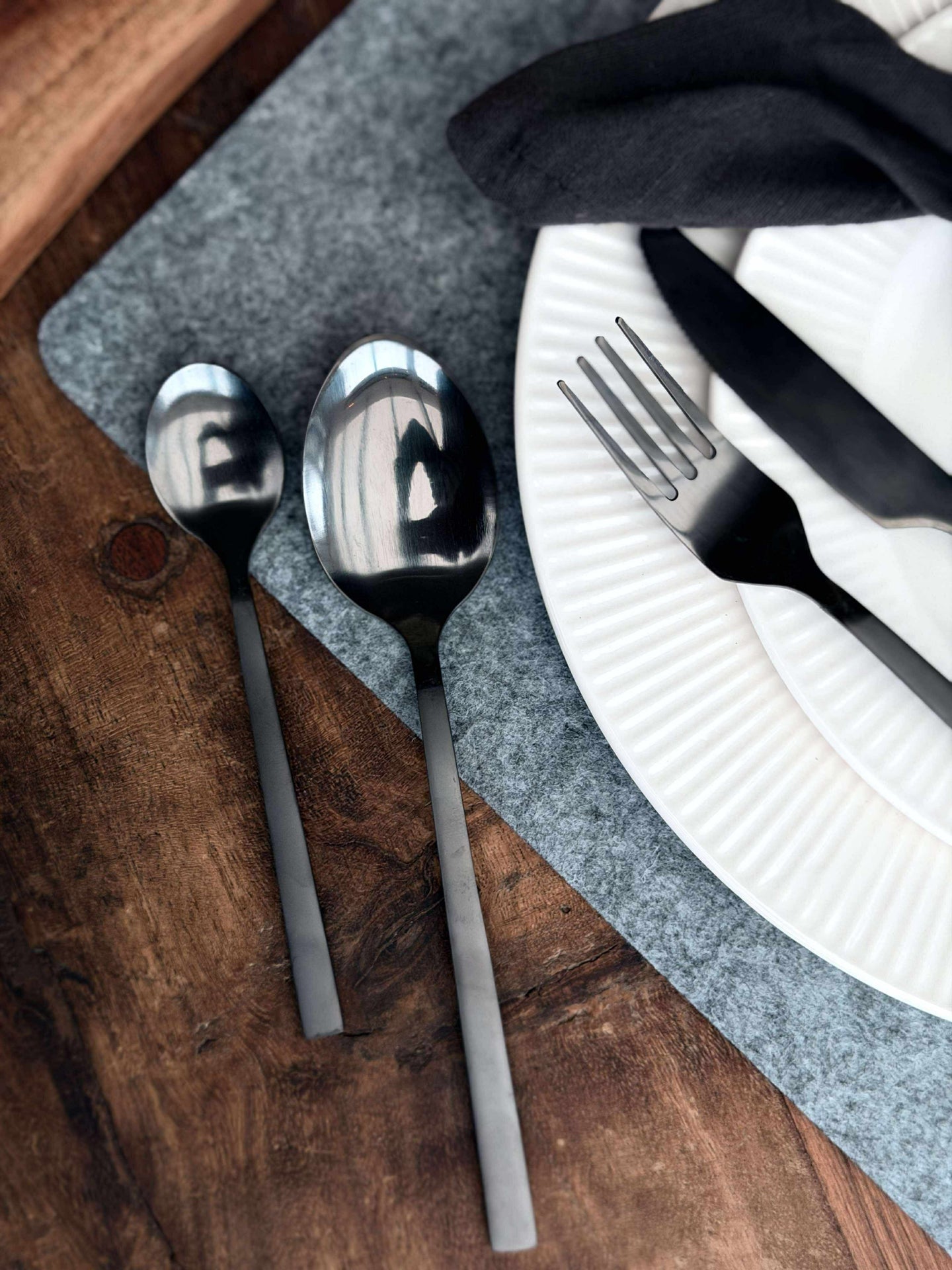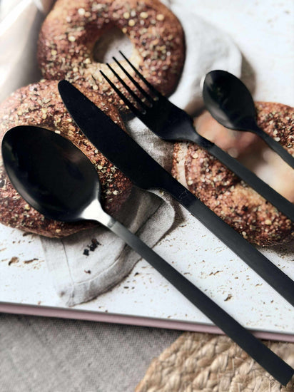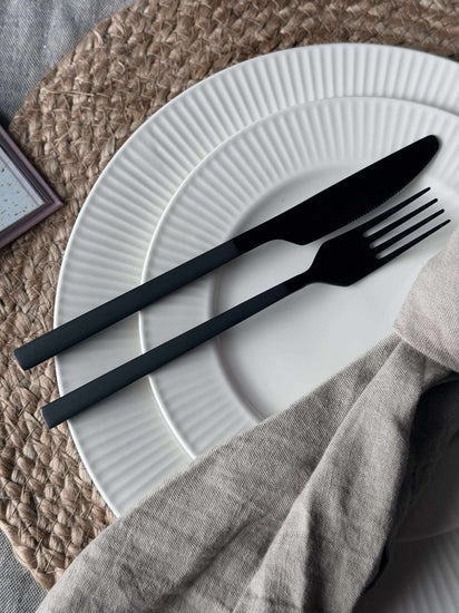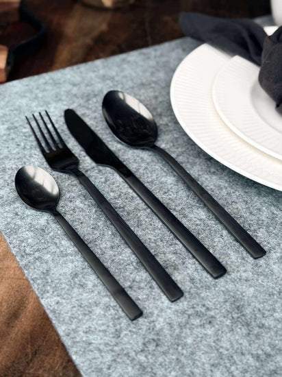 Bestick 16 delar i ask - Matt svart