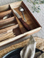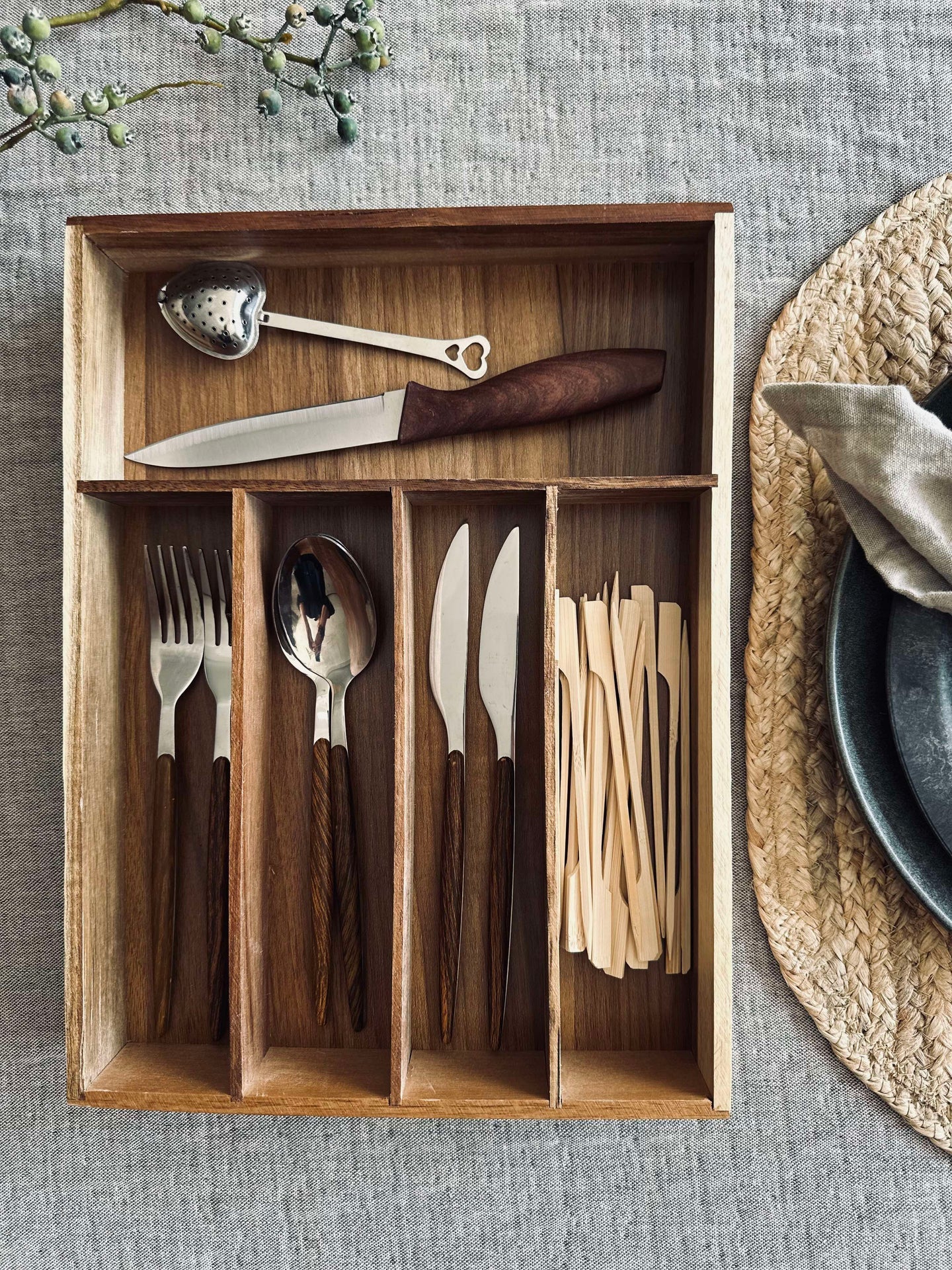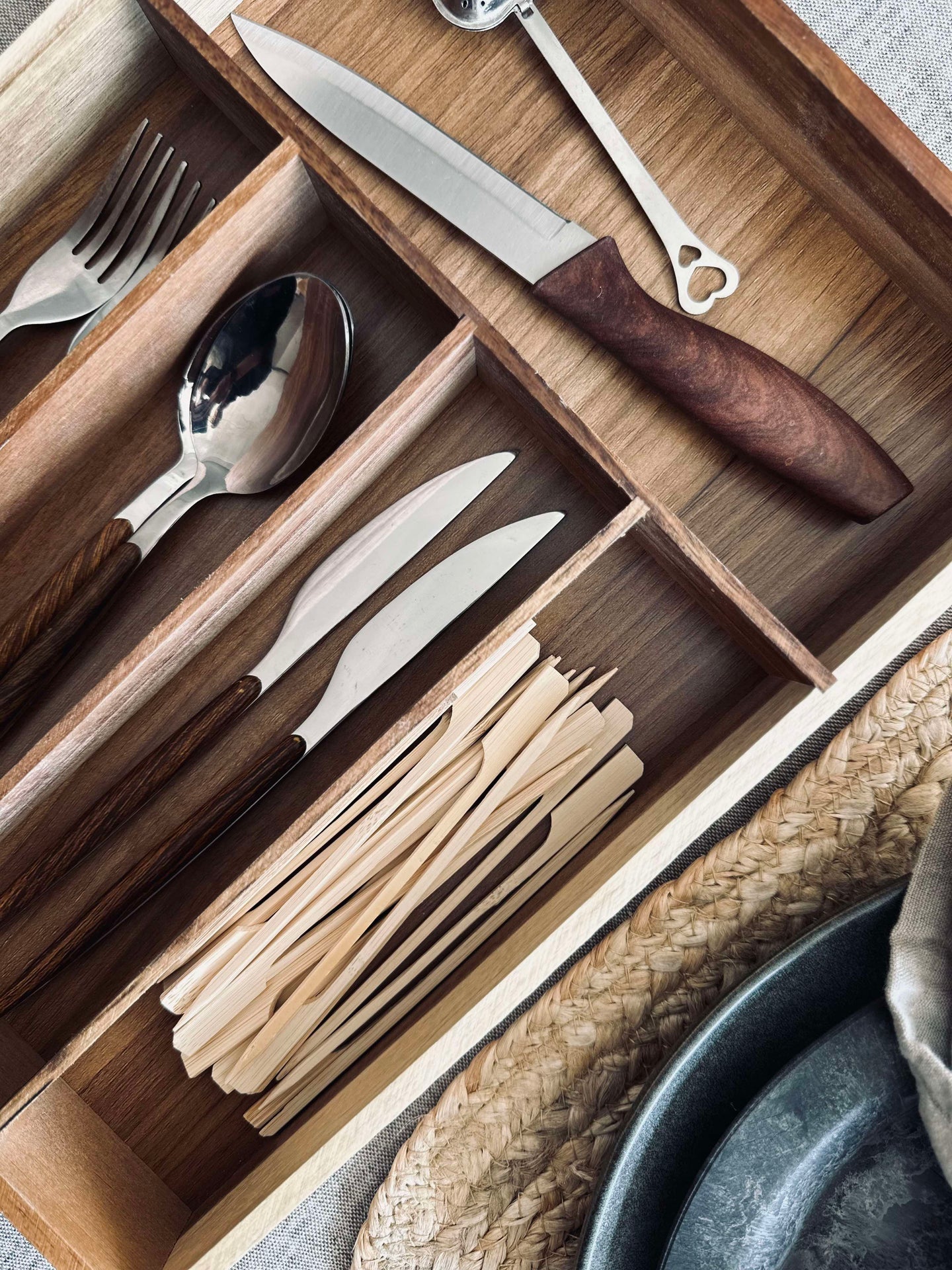 Trött på röran i kökslådan? Denna besticklåda erbjuder en praktisk lösning för att organisera dina bestick på ett enkelt och stilrent sätt. Med hållbart material och en passande storlek för de flesta kök blir ordning en naturlig del av vardagen.