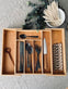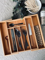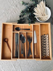 Ge ditt kök den organisatoriska uppgradering det förtjänar med vår justerbara besticklåda i trä. Sluta leta efter dina köksredskap och få ordning på kaoset idag. Uppgradera din köksupplevelse med denna praktiska lösning!