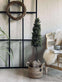 Den konstgjorda tallen är tillverkad av plast och jute, vilket ger en hållbar och lättskött dekoration. Plastens motståndskraft mot fukt och slitage gör att tallen behåller sitt utseende över tid, medan jute tillför en naturlig textur och känsla. Kombinationen av dessa material gör att tallen kan placeras både inomhus och i skyddade utomhusmiljöer utan att förlora sin charm.