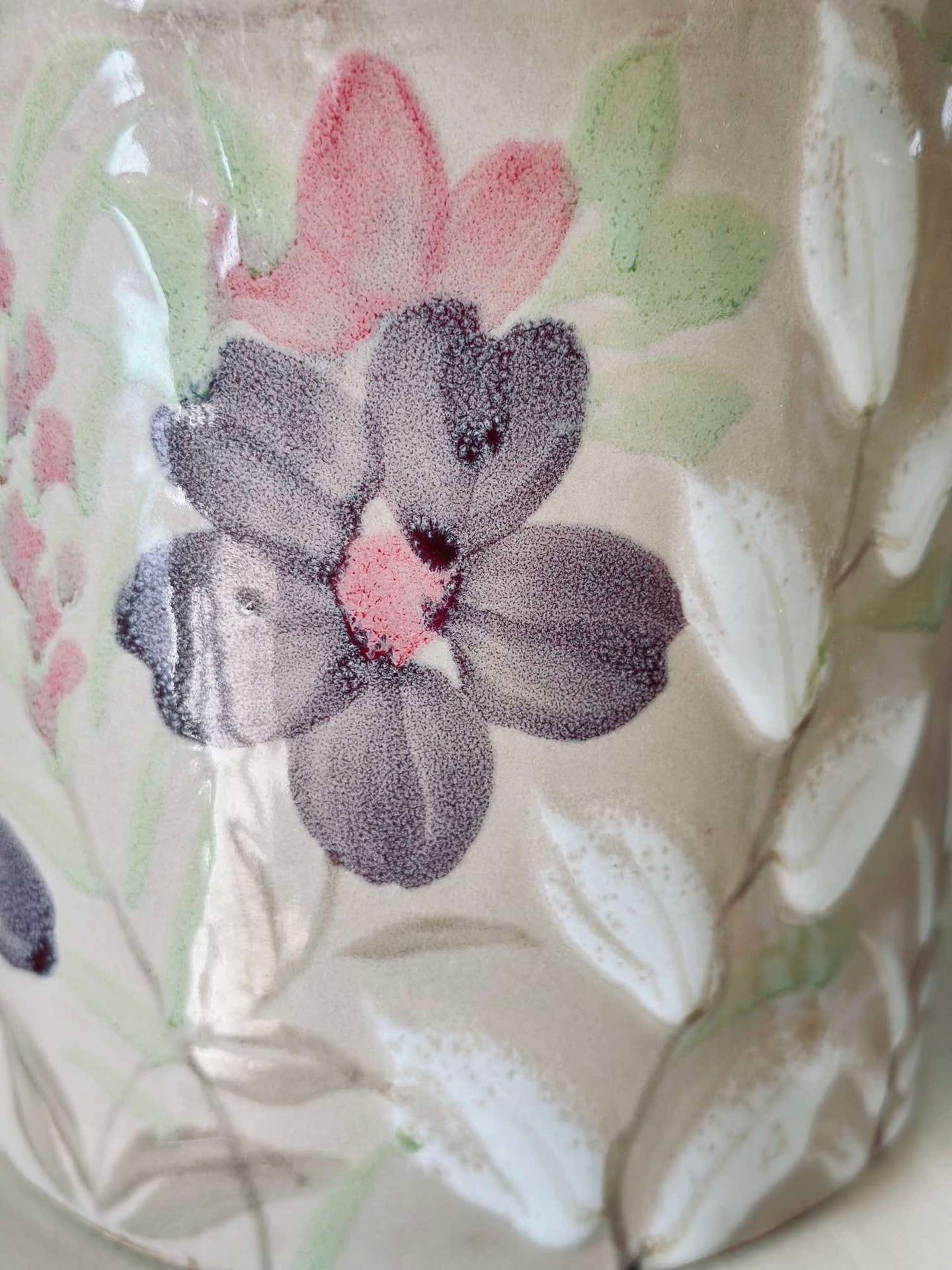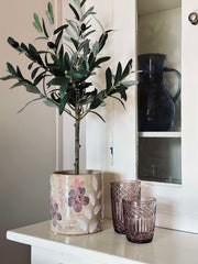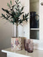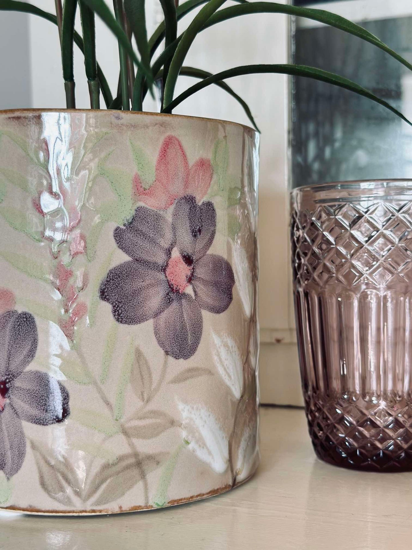 Blomkrukan är tillverkad av keramik, vilket ger den en robust och hållbar struktur. Keramikens naturliga egenskaper gör att krukan effektivt reglerar fukt och temperatur, vilket skapar en gynnsam miljö för växtens rötter. Dessutom är keramiken lätt att rengöra och behåller sitt utseende över tid, vilket gör den till ett praktiskt val för både inomhus- och utomhusbruk.