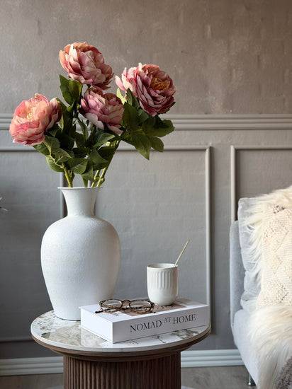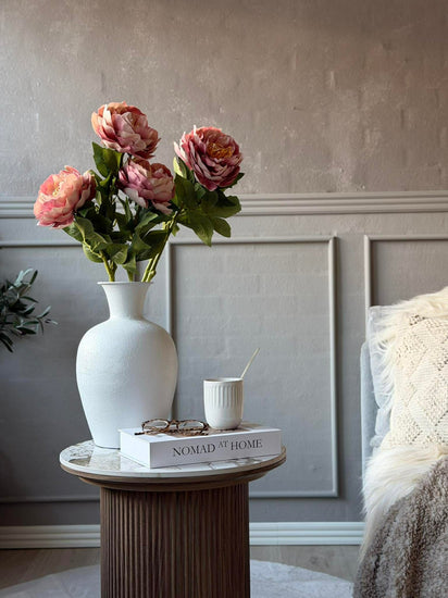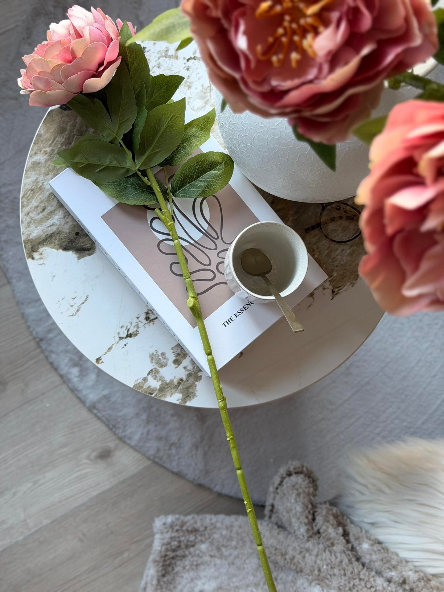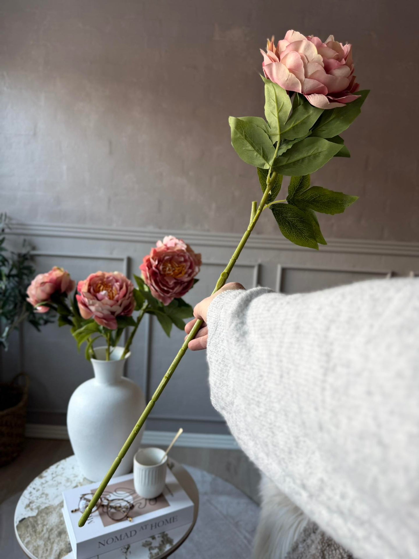 Blomma Pion Rosa är en naturtrogen pion i en mjuk rosa nyans, levererad som en dekorativ stjälk. Det dämpade, romantiska uttrycket gör den lämplig som en lugn detalj i din inredning när du vill ha en lätt och floral stil.