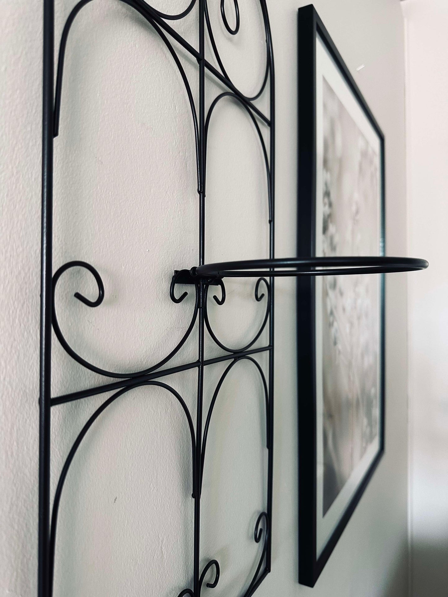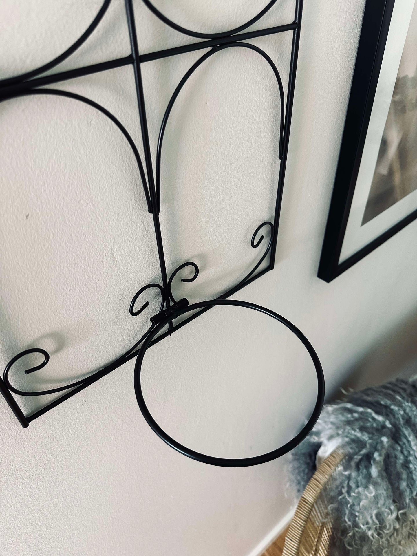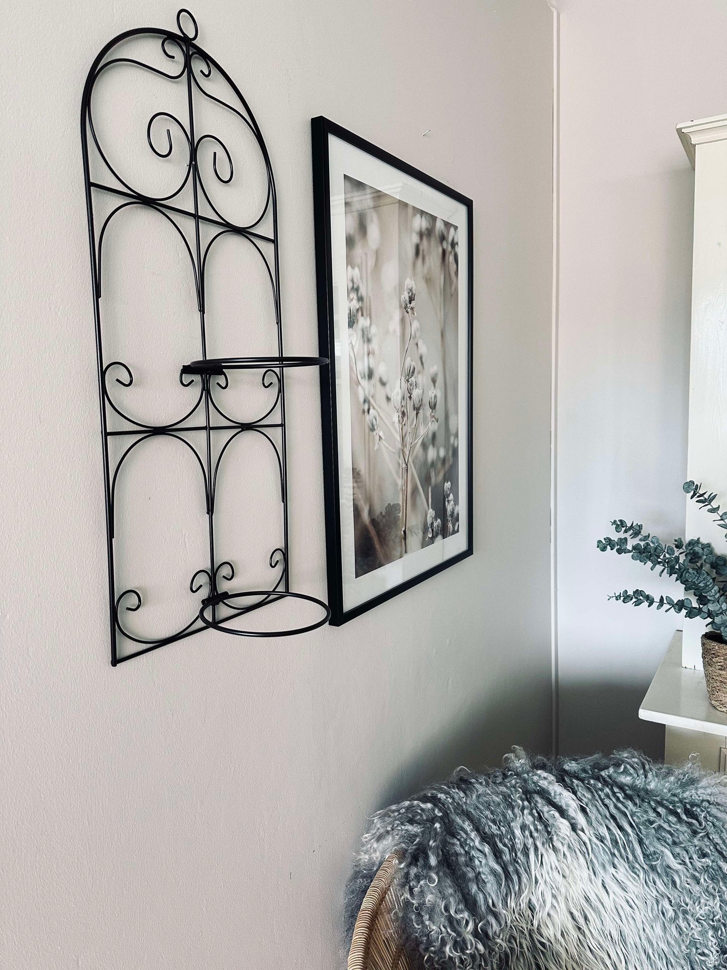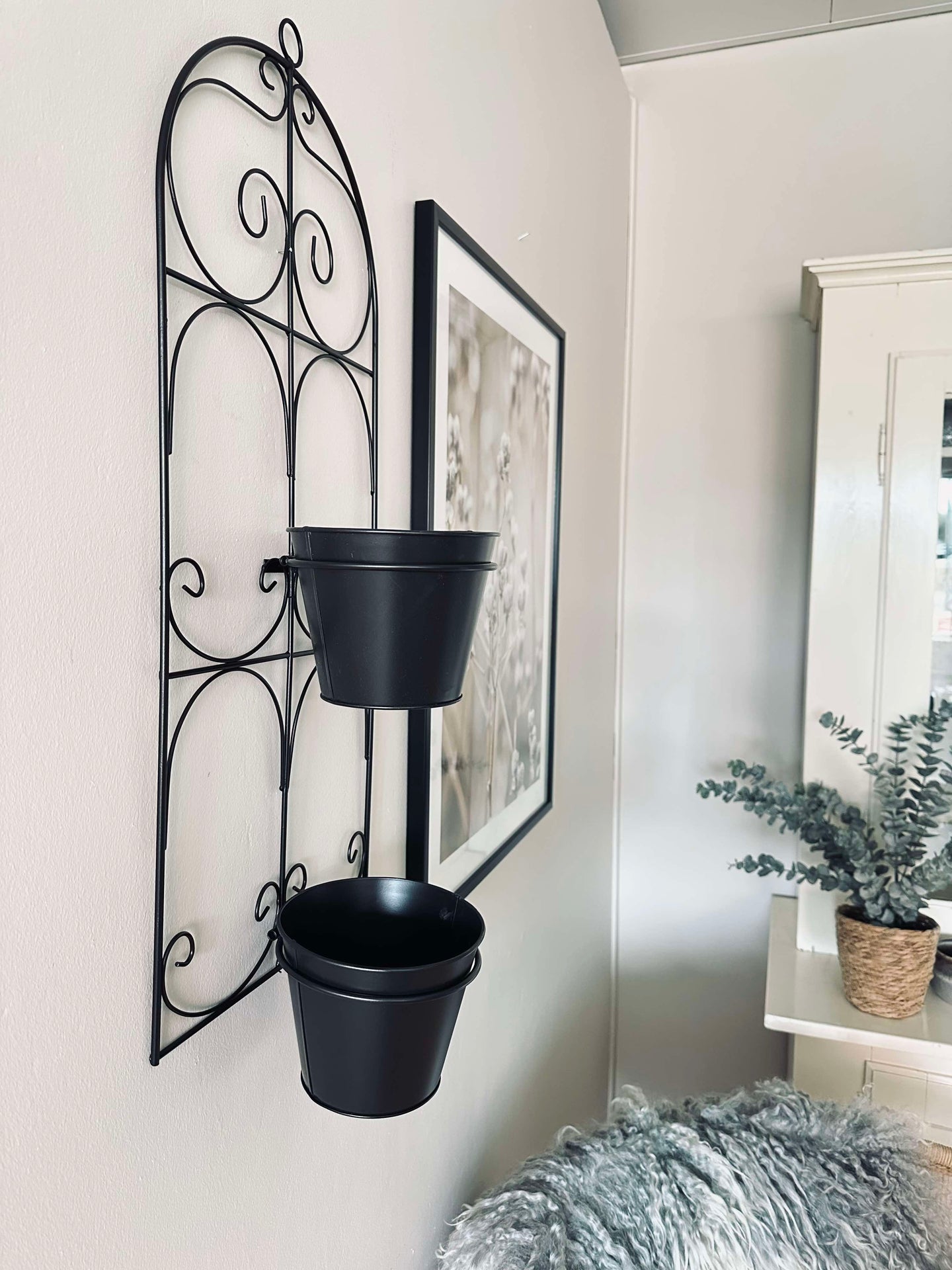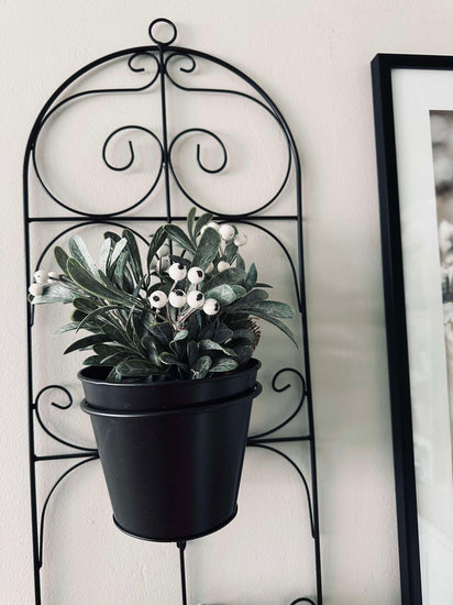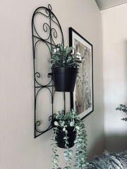 Den väggmonterade blomsterhängaren är tillverkad av svart metall, vilket ger den en stilren och modern känsla som passar in i de flesta inredningsstilar. Metallen är robust och hållbar, vilket innebär att hängaren kan bära tyngre blomsterarrangemang utan att kompromissa med säkerheten. Dessutom är den enkla färgen lätt att matcha med andra dekorativa element i hemmet.