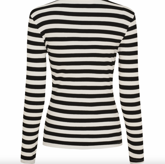 Blusen är randig i en klassisk svart ton och är gjord i 97% viskos och 3% elastan, vilket ger en lätt smidighet i tyget.