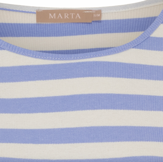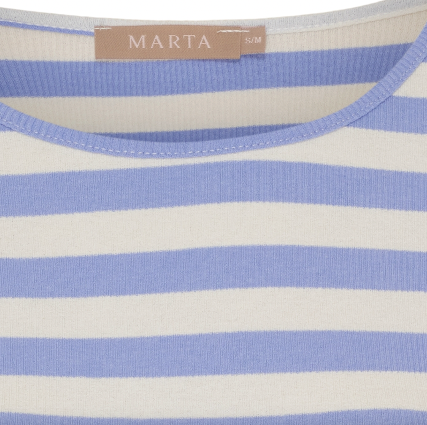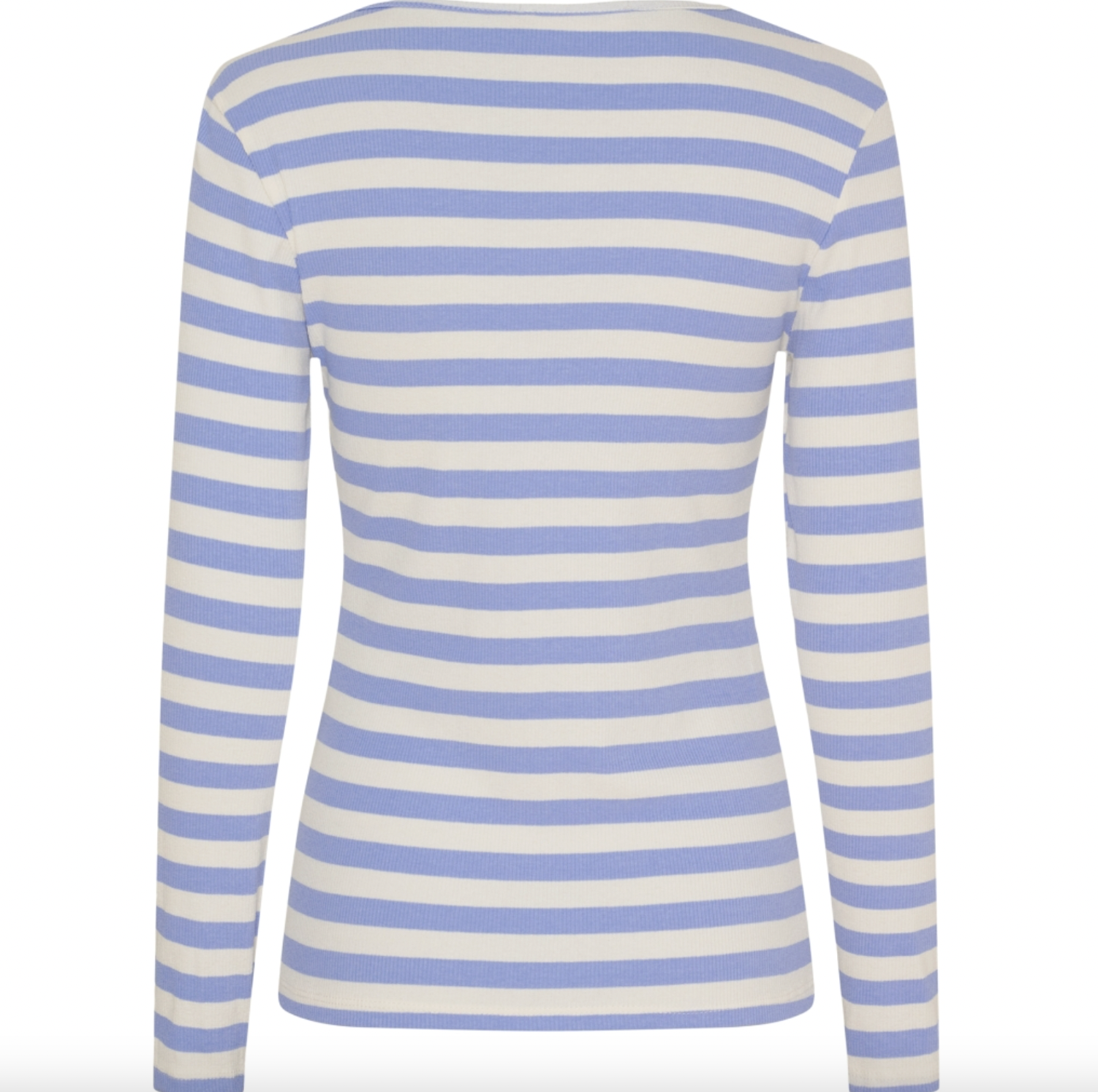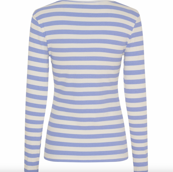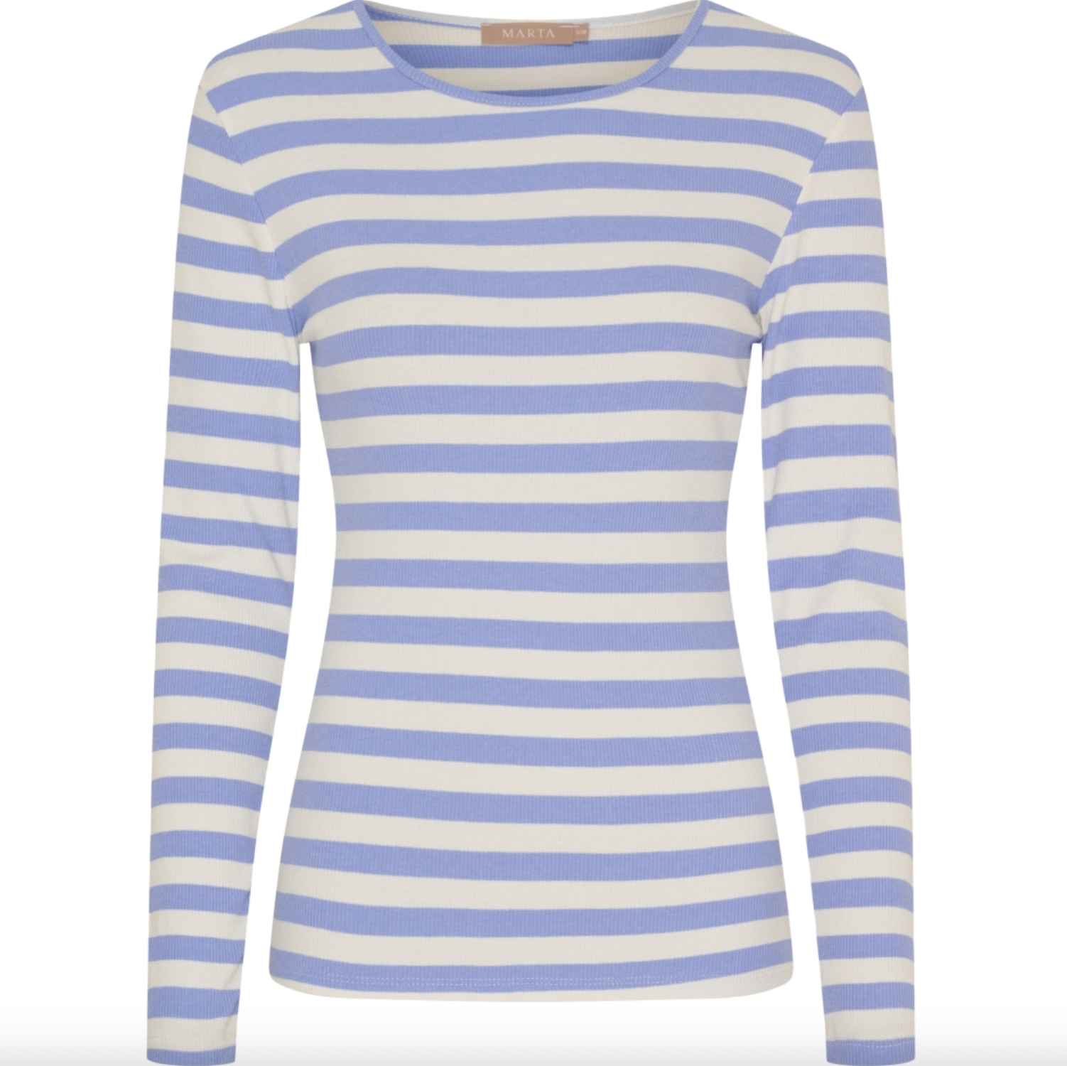 Blus Begonia - Celeste är en bas, randig långärmad blus från Marta Du Cháteau i en härligt mjuk kvalitet. Den blå färgen och det enkla randiga uttrycket gör den lätt att styla, oavsett om du bär den ensam eller som ett diskret lager under andra plagg.