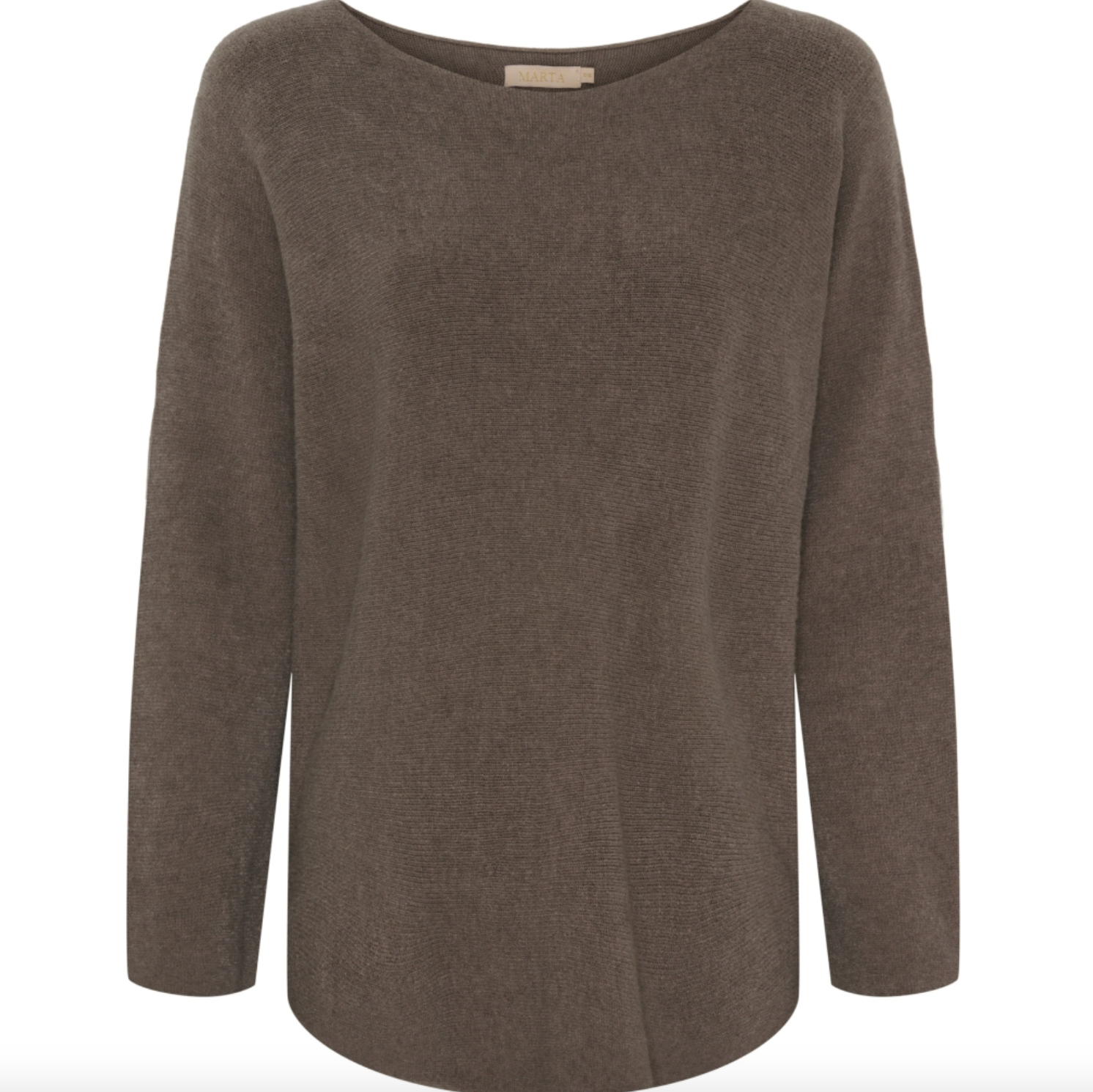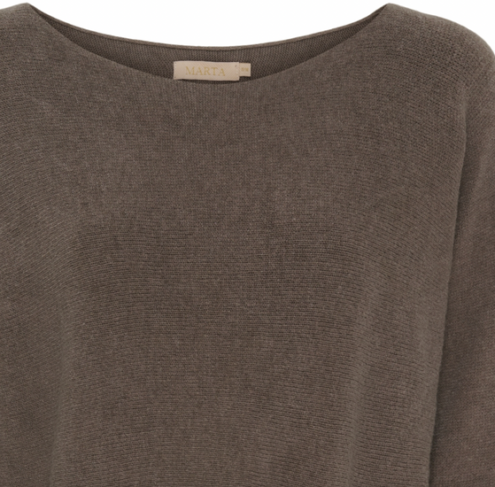 Dagmar är en härligt mjuk stickad blus med båtringning och ett enkelt, enfärgat uttryck. Den här varianten kommer i taupe/brun och har en regular passform som ger en lugn och klassisk look. Ärmarna är gjorda i en längre längd.