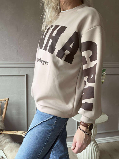 Blus Hibiscus är en cool och trendig sweatshirt från Marta Du Chateau i en lugn beige färg med tryck. Den oversizeda passformen ger ett avslappnat uttryck som fungerar lika bra till vardagslooks som till en råare outfit med jeans och chunky boots — en mdc hibiscus sweatshirt för den som vill ha både stil och bekvämlighet.