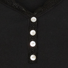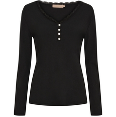 Blusen med blondekant är tillverkad av ett material som består av 95 % bomull och 5 % elastan. Den höga bomullsandelen ger en mjuk och skön känsla mot huden, vilket gör den behaglig att bära hela dagen. Elastan ger materialet en lätt stretch, vilket bidrar till en smickrande passform och rörelsefrihet. Kombinationen av dessa material gör blusen både funktionell och stilren.