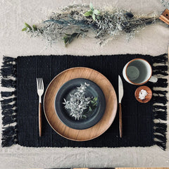 Skapa en stilren och miljövänlig atmosfär i ditt kök med vår Bordsduk Svart - Återvunnen Bomull. Låt din middagsbjudning bli både praktisk och elegant med denna hållbara lösning. Ge ditt hem den omtanke det förtjänar, välj en bordsduk som gör skillnad!