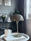 Bordslampa Oliv är en dekorativ bordslampa i metall med ett lugnt, enkelt uttryck. Den kompakta storleken gör den lättplacerad när du vill ha ljus på en skänk, ett sidobord eller i en bokhylla.