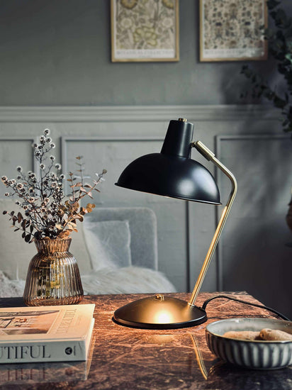Letar du efter en stilren bordslampa som kombinerar funktion och design? 'Bordslampa Retro - Svart / guld' erbjuder en enkel lösning för att förbättra atmosfären i ditt hem och ger praktiskt ljus där du behöver det som mest.