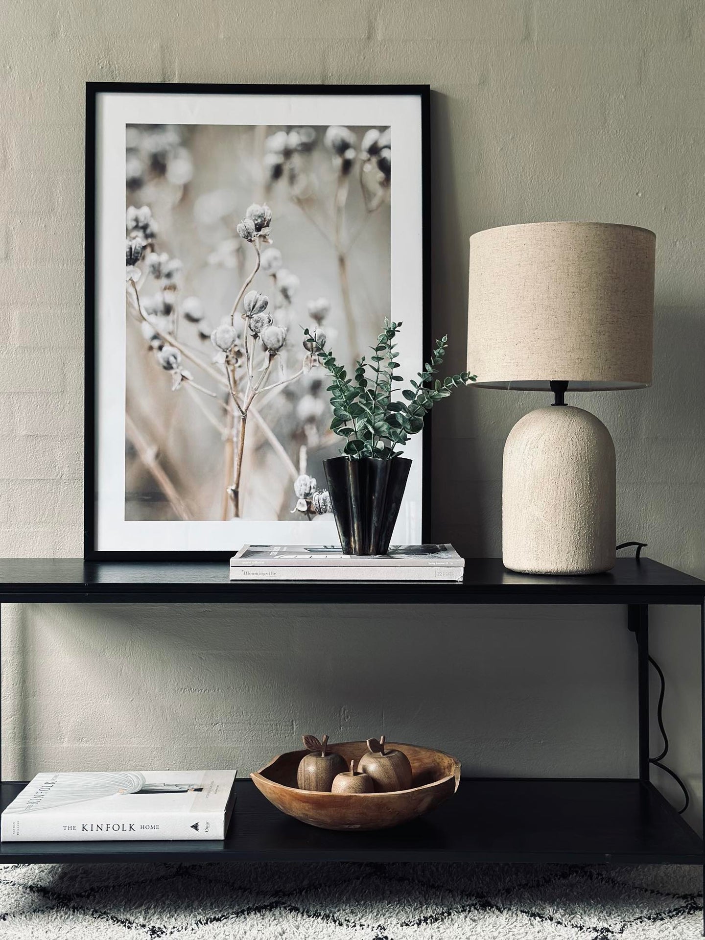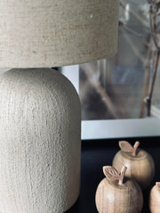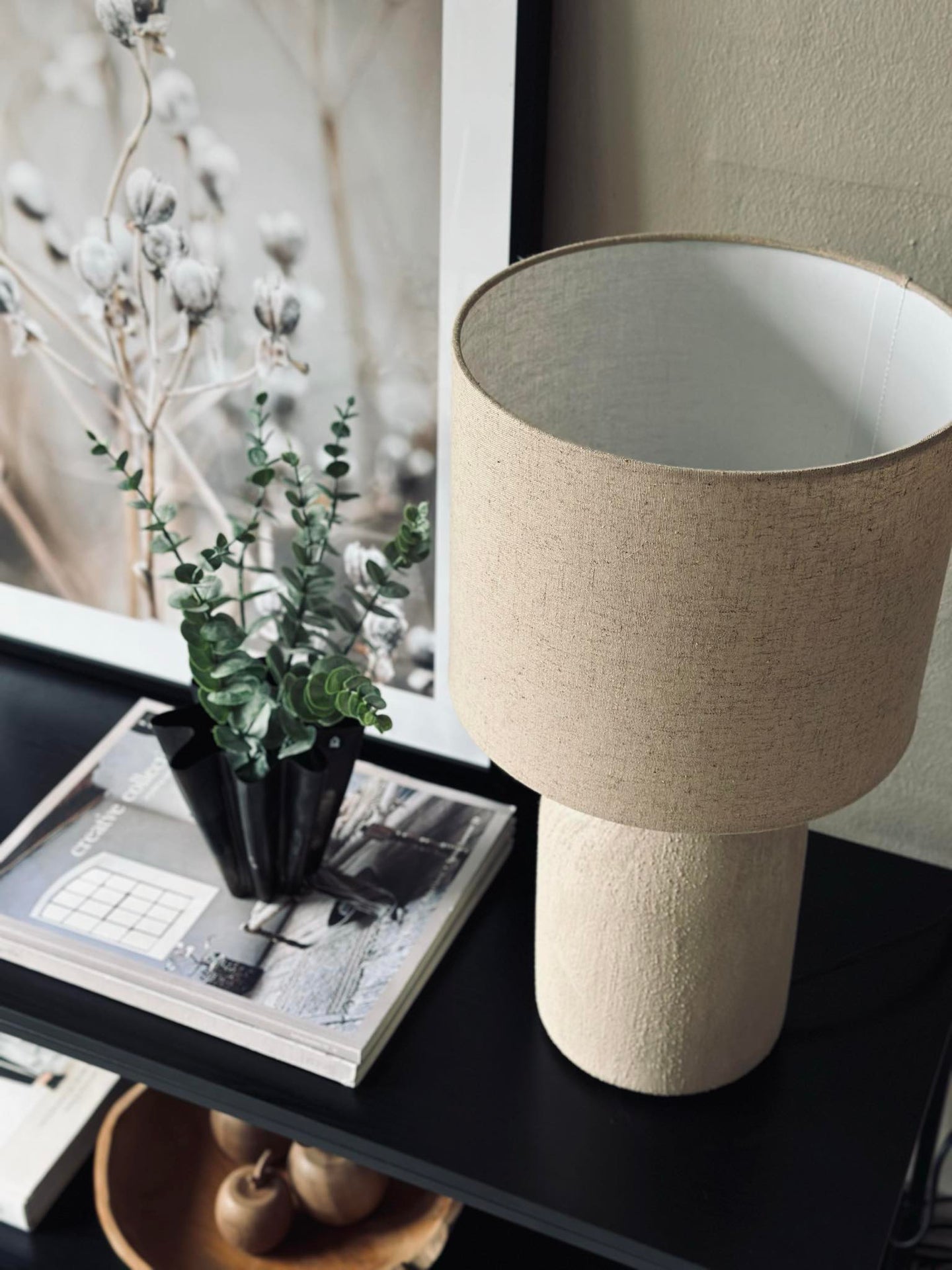 Stentöjsbordslampan erbjuder en naturlig och jordnära estetik som enkelt smälter in i olika inredningsstilar. Materialet stentøj är robust och hållbart, vilket säkerställer att lampan behåller sin skönhet och funktionalitet över tid. Dess yta ger en mjuk och behaglig ljusspridning, vilket skapar en inbjudande atmosfär i vardagsrummet. Denna lampa kombinerar funktionalitet med tidlös design.