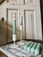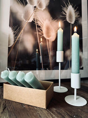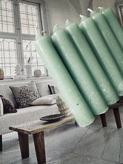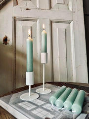 - Vackra bordsljus i dämpad grön färg med rustik finish