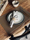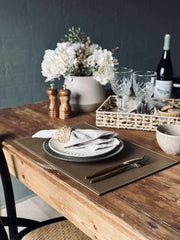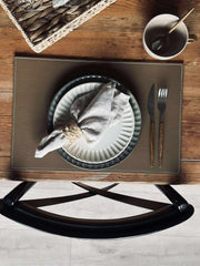 Bordsunderlägget, tillverkat av konstläder, erbjuder en praktisk och hållbar lösning för ditt kök. Konstläder är lätt att rengöra, vilket gör det enkelt att hantera eventuella spill och fläckar. Dessutom ger materialet en stilren och modern känsla till ditt matbord, samtidigt som det skyddar ytan från värme och repor.