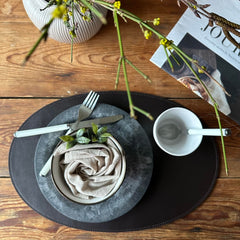 Låt vårt läderbordsunderlägg förvandla dina måltider till en elegant och bekymmersfri upplevelse. Ge ditt kök en sofistikerad touch samtidigt som du skyddar ditt bord från spill och fläckar. Upplev en ny nivå av stil och funktionalitet med vårt ovala bordsunderlägg.