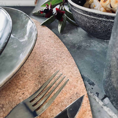 Våra bordsunderlägg kommer med en baksida i klassisk naturfärgad kork, vilket gör dem vändbara för en mer mångsidig användning. Denna funktion ger dig möjlighet att snabbt och enkelt ändra utseendet på ditt matbord, samtidigt som det ger extra skydd mot värmeskador och repor. Korkmaterialet är dessutom naturligt vattenavvisande, vilket bidrar till underläggens hållbarhet.