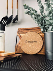 Vårt magnetiska bordsunderlägg är tillverkat av kork, ett hållbart och miljövänligt material. Korkens naturliga egenskaper gör att den kan hantera höga temperaturer utan att skadas, vilket är perfekt för att skydda ditt bord från varma kastruller och pannor. Dessutom är korken lätt att rengöra och behåller sin form även efter långvarig användning. Den magnetiska funktionen gör att bordsunderlägget enkelt kan fästas på ytor, vilket ger extra stabilitet och säkerhet.