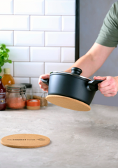 Den magnetiska bordskånern är tillverkad av kork med inbyggd magnet, vilket ger en stabil och säker placering på bordet. Korkmaterialet ger en naturlig och varm känsla samtidigt som det skyddar bordet från värmeskador. Magneterna håller skånern på plats, vilket minskar risken för att den glider bort eller välter. Detta gör den praktisk för både vardagsbruk och vid festligare tillfällen.