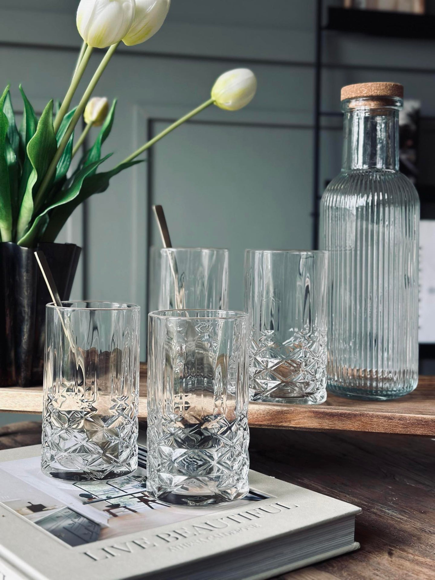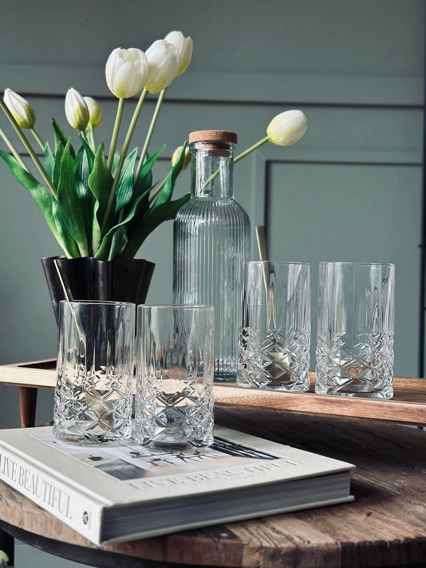 Dricksglas i klart glas erbjuder en ren och tidlös estetik som passar in i alla miljöer, från vardagsrum till festliga sammanhang. Glasets transparens gör att dryckens färg och presentation framhävs, vilket kan förhöja upplevelsen av både enkla och mer avancerade drycker. Dessutom är det lätt att kombinera med annan bordsdukning, vilket gör det till ett mångsidigt val för alla tillfällen.