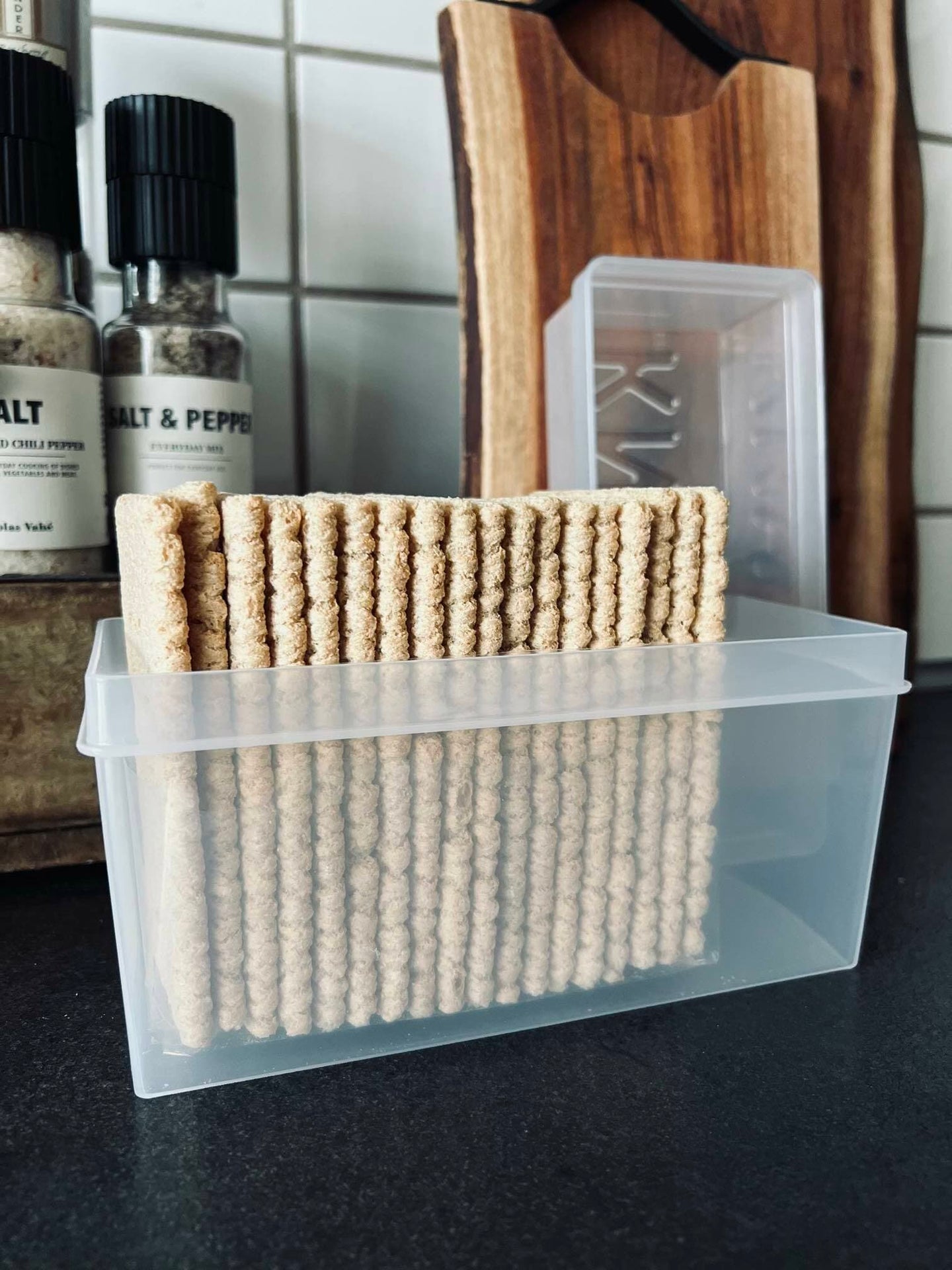 Har du tröttnat på att ditt knäckebröd blir mjukt och smaklöst efter bara en dag? Investera i vår knäckebrödbox och säkra knäckebrödets fräschör och hållbarhet. En praktisk och stilren lösning för alla knäckebrödsälskare.