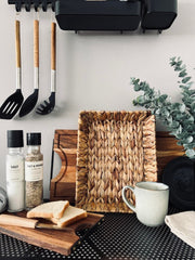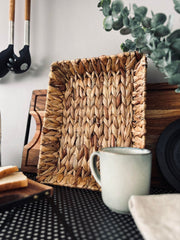 Denna vattenhyacintbricka, tillverkad av äkta vattenhyacint, erbjuder en kombination av estetik och funktionalitet. Materialets naturliga fibrer ger varje bricka en särpräglad textur och färgton, vilket skapar en varm och inbjudande atmosfär i ditt hem. Dessutom är vattenhyacint ett förnybart material, vilket gör brickan till ett miljövänligt val för medvetna konsumenter.