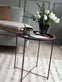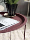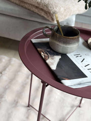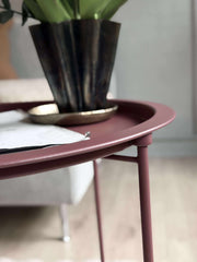 Trött på röriga ytor i ditt vardagsrum? Brickbord i bordeaux metall erbjuder en stilren lösning för praktisk förvaring och yta för drycker eller dekorationer. Dess kompakta design passar de flesta utrymmen och ger en subtil färgklick till ditt hem.